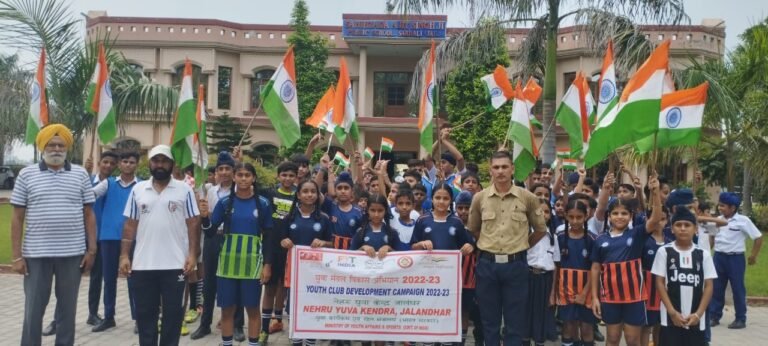 जालन्धर : नेहरू युवा केंद्र जालंधर, युवा मामले और खेल मंत्रालय, भारत सरकार जालंधर जिले के विभिन्न विकास खंडों में विभिन्न युवा क्लबों और राष्ट्रीय युवा स्वयंसेवकों और स्थानीय जनता की मदद से पूरे जिले में हर घर तिरंगा अभियान चलाया जा रहा है जिला युवा अधिकारी नित्यानंद यादव ने सभी युवा स्वयंसेवकों को कार्यक्रम की जानकारी दी और बताया कि भारत की आजादी के 75 वर्ष पुरे होने के उपलक्ष्य में पुरे देश भर में आजादी का अमृत महोत्सव कार्यक्रम के अन्तर्गत हर घर तिरंगा अभियान के माध्यम से लोगो को अपने घरो पर तिरंगा लगाने हयूत प्रेरित किया जायेगा
