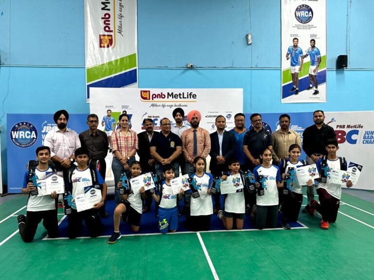 जालंधर : बैडमिंटन प्रतिभा के प्रशंसिए प्रदर्शन में, पंजाब के हर कोने से 800 से अधिक प्रतिभाशाली युवा खिलाड़ियों ने पीएनबी मेटलाइफ जूनियर बैडमिंटन चैंपियनशिप 2023 के 7वें संस्करण में मुख्य भूमिका निभाई। यह उत्सुकता से प्रतीक्षित खेल प्रतियोगिता आज प्रतिष्ठित रायज़ादा में एक रोमांचक समापन के साथ समाप्त हुआ। हंसराज बैडमिंटन स्टेडियम जहां 10 उभरते बैडमिंटन खिलाड़ी चैंपियन अपने-अपने वर्ग में विजयी हुए युवा बैडमिंटन टूर्नामेंट में विभिन्न आयु कैटेगरी में शानदार प्रदर्शन दिखाया। 9 वर्ष से कम आयु के लड़कों में विवान शर्मा ने वॉक ओवर की वजह से जीत पाई| वहीँ दूसरी ओर 9 वर्ष से कम आयु की लड़कियों की सिंगल्स कैटेगरी में, हरगुन कौर ने अपनी उल्लेखनीय प्रतिभा का प्रदर्शन करते हुए केलिन को 15-14, 15-13 के प्रभावशाली स्कोर के साथ हरा दिया।11 वर्ष से कम आयु के लड़कों के सिंगल्स कैटेगरी में, हिम्मत कुमार ने रबिगुएल अंजी से बेहतर प्रदर्शन किया और 15-8,15-8 के स्कोर के साथ शानदार जीत हासिल की। इस बीच, 11 वर्ष से कम आयु की लड़कियों के सिंगल्स कैटेगरी में, जपलीन कौर ने अपने उल्लेखनीय कौशल का प्रदर्शन करते हुए आधिरा गुप्ता को 15-6, 15-8 के प्रभावशाली स्कोर के साथ हरा दिया।लड़कों के सिंगल्स अंडर 13 कैटेगरी में, जतीश डोगरा ने बैडमिंटन कोर्ट पर अपने शानदार कौशल का प्रदर्शन किया, एक रोमांचक मैच में अपने प्रतिद्वंद्वी विहान बंसल से बेहतर प्रदर्शन किया। जतीश डोगरा ने अपनी बहुमुखी प्रतिभा और दृढ़ संकल्प का प्रदर्शन करते हुए, 15-11,15-11 के स्कोर के साथ एक शानदार जीत हासिल की। इस बीच, गर्ल्स सिंगल्स अंडर 13 वर्ग में मेहविश कौर ने जपलीन कौर को प्रभावशाली सीधे सेटों में 15-6, 15-8 के स्कोर के साथ हराकर अपनी ताकत का प्रदर्शन किया और खुद को अपने आयु कैटेगरी में एक मजबूत प्रतियोगी के रूप में स्थापित किया।