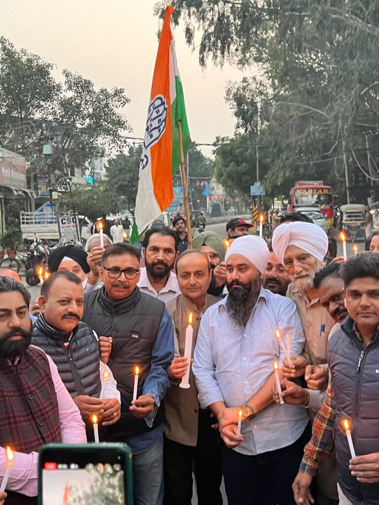 ਜਿਲਾ ਕਾਂਗਰਸ ਕਮੇਟੀ ਸ਼ਹਿਰੀ ਵਲੋ ਲਾਅ ਐਂਡ ਆਰਡਰ ਦੀ ਮਾੜੀ ਵਿਵਸਥਾ ਨੂੰ ਲੈ ਕੇ ਕੈਂਡਲ ਮਾਰਚ ਕਢਿਆ ਗਿਆ । ਇਸ ਮੌਕੇ ਤੇ ਜਿਲਾ ਕਾਂਗਰਸ ਕਮੇਟੀ ਸ਼ਹਿਰੀ ਦੇ ਪ੍ਰਧਾਨ ਰਜਿੰਦਰ ਬੇਰੀ ਨੇ ਕਿਹਾ ਕਿ ਅੱਜ ਸ਼ਹਿਰ ਵਿਚ ਲਾਅ ਐਂਡ ਆਰਡਰ ਦੇ ਹਾਲਾਤ ਬੇਕਾਬੂ ਹੈ । ਰੋਜਾਨਾ ਸ਼ਹਿਰ ਵਿਚ ਲੁਟਾਂ ਖੋਹਾਂ, ਡਕੈਤੀਆਂ ਤੇ ਗੋਲੀਕਾਂਡ ਜਿਹੀਆਂ ਘਟਨਾਵਾਂ ਦਿਨੋ ਦਿਨ ਵਧਦੀਆਂ ਜਾ ਰਹੀਆਂ ਹਨ ਤੇ ਪਰ ਹਾਲਾਤ ਬਿਲਕੁਲ ਵੀ ਕੰਟਰੋਲ ਤੋ ਬਾਹਰ ਹਨ । ਅੱਜ ਹਰ ਵਰਗ ਇਸ ਨਿਕੰਮੀ ਸਰਕਾਰ ਤੋ ਦੁਖੀ ਹੈ । ਨਾ ਤਾਂ ਵਪਾਰੀ ਸੁਰਖਿਅਤ, ਨਾ ਦੁਕਾਨਦਾਰ ਸੁਰਖਿਅਤ, ਨਾ ਹੀ ਆਮ ਲੋਕ ਸੁਰਖਿਅਤ, ਲੋਕ ਤਾਂ ਸਵੇਰੇ ਸੈਰ ਕਰਨ ਤੋ ਵੀ ਗੁਰੇਜ ਕਰ ਰਹੇ ਹਨ ਇਹੋ ਜਿਹੇ ਹਾਲਾਤ ਕਦੀ ਵੀ ਦੇਖਣ ਨੂੰ ਨਹੀ ਮਿਲੇ ਸਨ ।ਸ਼ਰੇਆਮ ਗੋਲੀਆਂ ਚਲ ਰਹੀਆਂ ਹਨ, ਕਤਲ ਹੋ ਰਹੇ ਹਨ। ਆਮ ਆਦਮੀ ਪਾਰਟੀ ਦੀ ਸਰਕਾਰ ਬਣਨ ਤੋ ਪਹਿਲਾ ਨੂੰ ਵਡੇ ਵਡੇ ਸੁਪਨੇ ਦਿਖਾਏ ਗਏ ਪਰ ਅੱਜ ਸਭ ਕੁਝ ਉਸ ਦੇ ਉਲਟ ਹੋ ਰਿਹਾ ਹੈ ਤੇ ਪੰਜਾਬ ਦੇ ਮੁਖ ਮੰਤਰੀ ਭਗਵੰਤ ਮਾਨ ਸਿਰਫ ਸਟੇਜਾਂ ਤੇ ਚੁਟਕਲੇ ਸੁਣਾ ਰਹੇ ਹਨ । ਇਹ ਸਰਕਾਰ ਸਿਰਫ ਇਸ਼ਤਿਹਾਰਬਾਜੀ ਤੇ ਟਿਕੀ ਹੋਈ ਹੈ । ਜੇਕਰ ਸਰਕਾਰ ਨੇ ਇਸ ਹਾਲਾਤ ਤੇ ਕਾਬੂ ਨਾ ਪਾਇਆ ਤਾਂ ਸ਼ਹਿਰ ਦੇ ਹਾਲਾਤ ਦਿਨੋ ਦਿਨ ਹੋ ਬਦਤਰ ਹੋ ਜਾਣਗੇ । ਅੱਜ ਕਾਂਗਰਸ ਪਾਰਟੀ ਵਲੋ ਇਸ ਸਰਕਾਰ ਨੂੰ ਕੁੰਭਕਰਨੀ ਨੀਂਦ ਤੋ ਉਠਾਉਣ ਲਈ ਇਹ ਕੈਂਡਲ ਮਾਰਚ ਕੀਤਾ ਗਿਆ ਹੈ ਇਸ ਮੌਕੇ ਤੇ ਸ਼੍ਰੀਮਤੀ ਕਰਮਜੀਤ ਕੌਰ ਚੌਧਰੀ, ਹਰੀਸ਼ ਢਲ, ਰਛਪਾਲ ਜਖੂ, ਰਾਜੇਸ਼ ਜਿੰਦਲ ਟੋਨੂੰ, ਦੀਪਕ ਸ਼ਰਮਾ ਮੋਨਾ, ਕੰਚਨ ਠਾਕੁਰ ਮਹਿਲਾ ਪ੍ਰਧਾਨ, ਰਣਦੀਪ ਸਿੰਘ ਸੰਧੂ, ਨਰੇਸ਼ ਵਰਮਾ, ਗੁਰਜੀਤ ਸਿੰਘ ਕਾਹਲੋ, ਪਵਨ ਕੁਮਾਰ, ਮਨਮੋਹਨ ਸਿੰਘ ਬਿਲਾ,ਭਗਤ ਬਿਸ਼ਨ ਦਾਸ,ਸੰਜੂ ਅਰੋੜਾ, ਬਲਰਾਜ ਠਾਕੁਰ, ਤਰਸੇਮ ਸਿੰਘ ਲਖੋਤਰਾ, ਬਚਨ ਲਾਲ, ਅਨਮੋਲ ਗਰੋਵਰ,ਬਲਬੀਰ ਅੰਗਰਾਲ, ਜਗਦੀਸ਼ ਰਾਮ ਸਮਰਾਏ, ਪ੍ਰਭਦਿਆਲ ਭਗਤ, ਮਹਿੰਦਰ ਸਿੰਘ ਗੁਲੂ, ਰਵੀ ਸੈਣੀ, ਪਰਮਜੋਤ ਸਿੰਘ ਸ਼ੈਰੀ ਚਢਾ, ਡਾ ਜਸਲੀਨ ਸੇਠੀ, ਪਲਨੀ ਸਵਾਮੀ, ਜਗਜੀਤ ਸਿੰਘ ਜੀਤਾ, ਡਾ ਸੁਰਿੰਦਰ ਕਲਿਆਣ, ਕੁਲਦੀਪ ਸ਼ਰਮਾ, ਅਸ਼ਵਨੀ ਸ਼ਰਮਾ, ਸੁਖਵਿੰਦਰ ਸੁਚੀ ਪਿੰਡ ਰਵਿੰਦਰ ਸਿੰਘ ਲਾਡੀ, ਅਮਨ ਧੰਨੋਵਾਲੀ, ਸੁਨੀਲ ਦੁਗਲ, ਰਾਣਾ ਹਰਸ਼ ਵਰਮਾ, ਸੋਮ ਰਾਜ,ਸੋਮੀ, ਆਨੰਦ ਬਿਟੂ, ਸ਼ੁਭਾਸ਼ ਅਗਰਵਾਲ, ਰਾਜ ਕੁਮਾਰ ਰਾਜੂ, ਗੋਤਮ ਖੋਸਲਾ, ਲਵੀ ਸੋਹਲ,ਸੁਰਜੀਤ ਕੌਰ ਅਬਾਦਪੁਰਾ, ਮੀਨੂੰ ਬਗਾ, ਪਲਵੀ, ਚੰਦਰ ਕਾਂਤਾ, ਆਸ਼ਾ ਰਾਣੀ, ਆਸ਼ਾ ਸਹੋਤਾ, ਬਬਲੀ ਬਰਾਰ ਦੀਪਕ ਟੇਲਾ, ਸਤਪਾਲ ਰਾਏ, ਗੋਰਾ ਗਿਲ, ਯਸ਼ ਪਾਲ ਸਫਰੀ, ਜਗਮੋਹਨ ਸਿੰਘ, ਬੋਬ ਮਲਹੋਤਰਾ, ਭਾਰਤ ਭੂਸਨ, ਅਸ਼ੋਕ ਖੰਨਾ, ਲਛਮਣ ਦਾਸ, ਬਿਸ਼ਮਬਰ ਕੁਮਾਰ,ਸੁਦੇਸ਼ ਕੁਮਾਰ, ਅਰੁਣ, ਸਾਹਿਲ ਸਹਿਦੇਵ, ਨਵਦੀਪ ਜਰੇਵਾਲ, ਸਚਿਨ ਸਰੀਨ, ਗੁਰਕ੍ਰਿਪਾਲ ਸਿੰਘ ਭਟੀ, ਅਮਰੀਕ ਕੇ ਪੀ, ਰਵਿੰਦਰ ਕੀਮਤੀ, ਪਵਨ ਕੌਸ਼ਲ, ਮੌਜੂਦ ਸਨ