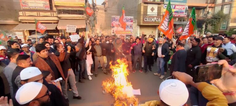 जालंधर : वेस्ट विधानसभा इलाक़े मे 18 साल की लड़की को जलाकर मार देने व हर रोज इलाक़े मे हर रोज हो रही लूटपाट,हत्याए व नशा तस्करी के चलते पंजाब सरकार व आम आदमी पार्टी के नेताओ की कारगुजारी के खिलाफ भारतीय जनता पार्टी वेस्ट विधानसभा के मंडल प्रधान कुनाल शर्मा,मनीष बल,गौरव जोशी,राकेश राना की अध्यक्षता मे माता रानी चौंक मॉडल हाऊस चौंक पर सैकड़ों भाजपा कार्यकर्ताओ ने एकत्रित होकर प्रचंड पुतला फूक प्रदर्शन किया।इस प्रदर्शन मे मुख्य रूप से जिला भाजपा प्रधान सुशील शर्मा,वेस्ट विधानसभा के प्रभारी जिला महामंत्री अशोक सरीन हिक्की,उपप्रधान अनिल मिनिया,मनीष विज,दविंद्र भारद्वाज,भूपिन्द्र कुमार,दर्शनलाल भगत,सचिव अश्वनी अटवाल,अमित भाटिया,रवींद्र धीर,योगेश मल्होत्रा,रोबिन सांपला,राजीव ढिंगरा विशेष रूप से उपस्थित हुए।इस कार्यक्रम मे सैंकड़ो भाजपा कार्यकर्ताओ मे भारी संख्या मे शामिल हुई महिलायें व मुस्लिम समाज के लोग आकर्षण का केंद्र बने।सभी भाजपा कार्यकर्ताओं ने जमकर आम आदमी पार्टी की सरकार के खिलाफ नारेबाजी कर जनता को जागरूक करने का काम किया।इस पुतला फूंक प्रदर्शन में भाजपा जिला अध्यक्ष सुशील शर्मा सभी कार्यकर्ताओं में पदाधिकारी को संबोधित करते हुए बताया कि हमारे जालंधर मे अपराध बेबस बन चुकी पुलिस की कारगुजारी के चलते बढ़ रहा है।क्यूकी लुटेरे अपराधी बेख़ौफ़ होकर वारदाते कर रहे है और दूसरी तरफ आम जनता बेबस मजबूर होकर असुरक्षा के माहौल मे जीने को मजबूर है।इसी वजह से बढ़ता क्राइम से पंजाब सरकार व पंजाब पुलिस के झूठे दावो की पोल खुलती जा रही है।जिसको छुपाने के लिए पंजाब सरकार जनता की आवाज को दबाने के प्रयास मे लगी हुई है।इस अवसर पर वेस्ट विधानसभा प्रभारी अशोक सरीन न सफल पुतला प्रदर्शन करने के लिए सभी मंडल प्रधानो समेत सभी भाजपा कार्यकर्ताओ का विशाल प्रदर्शन के लिए बधाई धन्यवाद करते हुए बोला कि नौजवानों,व्यापारियों,दुकानदारों,किसानों,महिलओ को सुरक्षा सुविधा देने मे पुरी तरह फेल हो चुकी आम आदमी पार्टी की पंजाब सरकार पुरी तरह फेल हो चुकी है।इसलिए अब जालंधर मे चरमरा चुकी कानून व्यवस्था को ठीक करने के लिए केवल भाजपा ही पंजाब की जनता को अमन शांति कानून व्यवस्था सुरक्षा सुविधा दे सकती है।इसलिए अब लोग आम आदमी पार्टी व कांग्रस के गठजोड़ के खिलाफ भाजपा को विकल्प के रूप मे अपना भविष्य देख रही है।इस मौके पर पूर्व पार्षद विपन,सन्नी शर्मा,सुदेश भगत,भगत मनोहर लाल, तरविंद्र सोई,मास्टर मुनि लाल,पंकज मल्होत्रा,ऋषि बहल,दविंदर अरोड़ा,कुमुद शर्मा ,राजेश अरोड़ा, शिव शर्मा, महेंद्र कुमार, अजय वर्मा, अनमोल महाजन, सनी शर्मा ,सुशांत कोहली,प्रवीण भारती, दीपाली बगड़िया,महिला मोर्चा प्रधान आरती 
