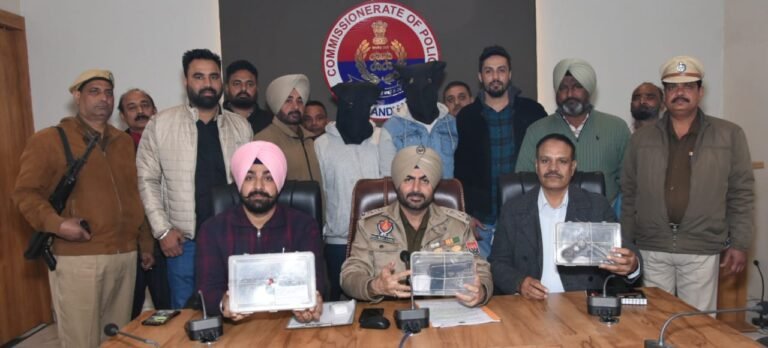 जालंधर : पुलिस कमिश्नरेट क्राइम ब्रांच की टीम ने शरारती अनंसरों के खिलाफ सख्ती से कार्रवाई करते हुए 2 आरोपियों अवैध हथियारों सहित काबू किया गया जानकारी देते हुए डीसीपी विर्क ने बताया कि क्राइम ब्रांच की टीम ने पटेल चौंक पर नाकेबंदी की हुई थी। इस दौरान उनकी टीम को गुप्त सूचना मिली थी कि आकाशदीप कुछ समय पहले जेल से कत्ल के केस से बाहर आया था। जिसके बाद अवैध हथियार है। जिस पर पहले भी कई मुकद्दमें दर्ज है। जो आज भी दाना मंडी शैड के नीचे अवैध हथियार लेकर खड़ा है और किसी का इंतजार कर रहा है रेड करने पर आकाशदीप को अवैध हथियार सहित काबू किया जा सकता है पकड़े गए आरोपी के पास से तालाशी के दौरान 2 पिस्टल .32 बोर, 2 जिंदा रौंद बरामद हुई।जिसके बाद आकाशदीप से पूछताछ के बाद पुलिस ने गुरविंदर सिंह को गिरफ्तार करके एक देसी कट्टा 315 बोर, 3 जिंदा रौंद बरामद किए। जांच में पता चला है कि आरोपी की दुश्मनी फतेह गैंग से चल रही है। इसलिए रजिंश के चलते वह अपने पास अवैध हथियार रखता है। पकड़े गए आरोपियों की पहचान आकाशदीप उर्फ आकाश पुत्र हरिंदर सिंह निवासी शहीद बाबू लाभ सिंह नगर, गुरविंदर सिंह उर्फ मल्ली पुत्र सतनाम सिंह निवासी न्यू दशमेश नगर जालंधर के रूप में हुई है।