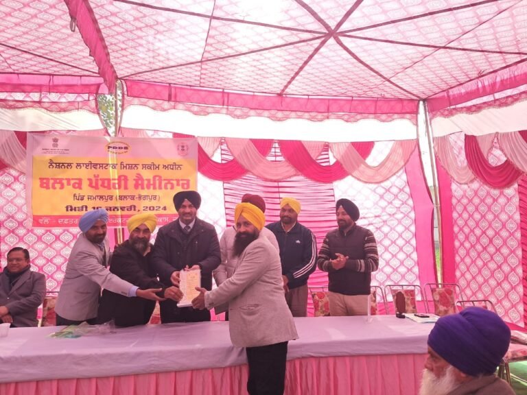 जालंधर: डेयरी व्यवसाय अपनाकर अपनी आय बढ़ाने के लिए जागरूकता बढ़ाने के लिए डेयरी विकास विभाग ने आज ब्लॉक भोगपुर में राष्ट्रीय पशुधन मिशन के तहत ब्लॉक स्तरीय जागरूकता सैमीनार का आयोजन किया।इसमें जमालपुर गांव और आसपास के गांवों के 250 से अधिक किसानों ने भाग लिया और दूध उत्पादन के क्षेत्र में बहुमूल्य जानकारी प्राप्त की।डिप्टी डायरैक्टर डेयरी विकास दविंदर सिंह ने किसानों को डेयरी व्यवसाय के बारे में जागरूक किया और बताया कि पंजाब सरकार किसानों की आय बढ़ाने को विशेष पहल दे रही है।उन्होंने कहा कि राष्ट्रीय पशुधन मिशन के तहत किसानों को उच्च तकनीक मशीनरी, चारा प्रबंधन, साइलेज बेलर और रैपर मशीन ,टीएमआर आदि पर मिलने वाली रियायतों का अधिक से अधिक लाभ लेना चाहिए।उन्होंने किसानों से अपील की कि डेयरी व्यवसाय एक लाभदायक व्यवसाय है, इसलिए उन्हें खेती के साथ-साथ इसे अपनाना चाहिए और पंजाब सरकार द्वारा दी जा रही सुविधाओं का अधिक से अधिक लाभ उठाया जाए। इस अवसर पर लीड बैंक के प्रतिनिधियों ने मुद्रा एवं स्टार्ट अप इंडिया के तहत उपलब्ध योजनाओं की जानकारी दी ताकि सरकार के वित्तीय साक्षरता एवं प्रबंधन लक्ष्य के तहत प्रत्येक डेयरी किसान को वित्तीय सहायता प्रदान की जा सके।इस अवसर पर हरदयाल सिंह, संजय कुमार, राम मूर्ति, गुरप्रीत कौर ने भी डेयरी उत्पादन के क्षेत्र से संबंधित बहुमूल्य जानकारी सांझा की।