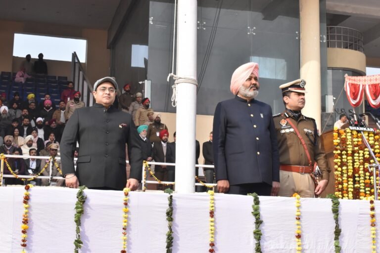 जालंधर : गुरु गोबिंद स्टेडियम में 75वें गणतंत्र दिवस समारोह में वित्त मंत्री हरपाल चीमा ने लहराया तिरंगा। वहीं, गणतंत्र दिवस को देखते हुए शहर की सुरक्षा बढ़ा दी गई है। इस समारोह के दौरान ग्राउंड को पुलिस ने पूरी तरह सील कर दिया है। इस दौरान स्टेडियम के अंदर-बाहर 750 पुलिसकर्मी तैनात किए गए। किसी भी आम आदमी को उस तरफ जाने की इजाजत नहीं है। मंत्री के साथ स्टेडियम में कई वीवीआईपी और वीआईपी भी पहुंचे।इस दौरान शहर की सुरक्षा के लिए करीब 1500 से ज्यादा मुलाजिमों को तैनात किया गया है।