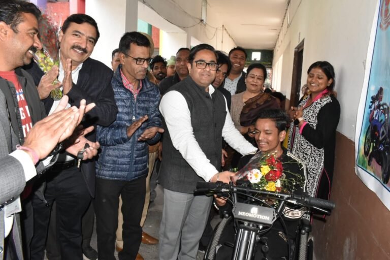 जालंधर : डिप्टी कमिश्नर विशेष सारंगल द्वारा आज विशेष ज़रूरत वाले 11 विद्यार्थियों को इलैक्ट्रिक व्हीलचेयर-कम-स्कूटर बांटे गए। जानकारी देते हुए डिप्टी कमिश्नर ने बताया कि यह व्हीलचेयर एक्सिस बैंक द्वारा अपने सी.एस.आर. के तहत स्पांसर की गई है और चेन्नई स्थित कंपनी नियोमोशन द्वारा इन्हें डिजाइन और बनाया गया है।दिव्यांग व्यक्तियों को हमारे समाज का अभिन्न अंग बताते हुए डिप्टी कमिश्नर ने कहा कि मुख्यमंत्री भगवंत सिंह मान के नेतृत्व वाली पंजाब सरकार समाज के सभी वर्गों का सर्वांगीण विकास सुनिश्चित करने के लिए वचनबद्ध है।उन्होंने आगे कहा कि दिव्यांग व्यक्तियों के कल्याण को सुनिश्चित करने के लिए जिला प्रशासन द्वारा पहले से ही कई पहल की जा रही है और यह इलैक्ट्रिक व्हीलचेयर-कम-स्कूटर इस नेक काम में एक और मील का पत्थर साबित होंगे।उन्होंने यह भी कहा कि इन व्हीलचेयर को बिना किसी बाहरी मदद के कम समय में इलैक्ट्रिक स्कूटर में बदला जा सकता है। नवीनतम तकनीक से लैस, ये स्कूटर 25 किमी प्रति घंटे की टॉप स्पीड हासिल कर सकते हैं, जबकि इनमें लगी बैटरियां प्रति चार्ज 25 किमी तक की रेंज प्रदान कर सकती है।डिप्टी कमिश्नर ने कहा कि यह इलेक्ट्रिक व्हीलचेयर-कम-स्कूटर छात्रों को आसानी से स्कूल आने-जाने में मददगार साबित होंगे। उन्होंने शिक्षा विभाग के अधिकारियों से कहा कि वे इन इलैक्ट्रिक स्कूटरों को चलाने वाले छात्रों के लिए पर्याप्त प्रशिक्षण सुनिश्चित करें ताकि उन्हें इनको चलाते समय किसी भी प्रकार की परेशानी का सामना न करना पड़े।उन्होंने राज्य भर में लगभग 50 ऐसे स्कूटर उपलब्ध करवाने की एक्सिस बैंक की पहल की प्रशंसा की, जिसके तहत जालंधर जिले में विशेष आवश्यकता वाले छात्रों को 11 इलैक्ट्रिक व्हीलचेयर-कम-स्कूटर प्रदान किए गए है।इस अवसर पर अन्यों के अलावा अतिरिक्त डिप्टी कमिश्नर जसबीर सिंह, एक्सिस बैंक के क्लस्टर हेड वीनू चोपड़ा, जिला शिक्षा अधिकारी सुरेश कुमार और हरजिंदर कौर, डिप्टी डी.ई.ओ. राजीव जोशी, प्रिंसिपल योगेश कुमार, सुरिंदर कुमार, डा. मनोज व राजू चौधरी आदि भी मौजूद रहे।