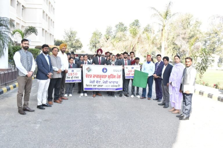 जालंधर : युवा मतदाताओं में मतदान के अधिकार के बारे में जागरूकता पैदा करने के लिए, जिला प्रशासन जालंधर ने सिस्टमैटिक वोटर्स एजुकेशन एंड इलेक्टोरल पार्टिसिपेशन (एसवीईईपी) कार्यक्रम के तहत एक बड़े पैमाने पर जागरूकता अभियान शुरू किया है।सीटी इंस्टीट्यूट शाहपुर में जागरूकता अभियान की अध्यक्षता करते हुए, एडीसी ने कहा कि जिला प्रशासन ने मतदाताओं के बीच मताधिकार के अधिकार के लिए जागरूकता फैलाने के लिए पहले से ही एक बहु-आयामी रणनीति अपनाई है ताकि मतदान के दिन यानी 1 जून, 2024 को अधिकतम मतदान सुनिश्चित किया जा सके। श्री जसबीर सिंह ने छात्रों से आग्रह किया कि वे मतदान प्रतिशत के मामले में जालंधर को अग्रणी जिला बनाने के लिए लोकतंत्र के सबसे बड़े त्योहार में अपनी अधिकतम भागीदारी सुनिश्चित करें। उन्होंने उल्लेख किया कि भारतीय चुनाव आयोग ने भी देश में 70 प्रतिशत से अधिक मतदान हासिल करने के लिए एक मिशन शुरू किया है और यह मिशन चुनावों में युवाओं की सक्रिय भागीदारी से ही पूरा किया जा सकता है।इस दौरान युवाओं को ईवीएम और वीवीपैट मशीनों की कार्यप्रणाली के बारे में भी प्रशिक्षण दिया गया। उन्होंने कहा कि यह डेमो युवा मतदाताओं को चुनाव में भाग लेने के लिए प्रेरित करने में भी उत्प्रेरक का काम करेगा।