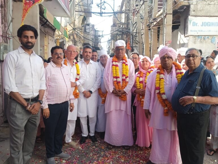 जालंधर: श्री कृष्ण मन्दिर किला मोहल्ला मे 50 वा वार्षिक स्वर्ण जयंती महोत्सव में होने जा रहे दो दिन के कार्यकर्म को लेकर भव्य शोभायात्रा का आयोजन किया गया इस मौके पर नार्थ हल्के के विधायक व् आल इण्डिया कांग्रेस कमेटी के सदस्य जूनियर अवतार हैनरी ने अपने साथियों सहित शिरकत कर संतो का आर्शीवाद प्राप्त किया