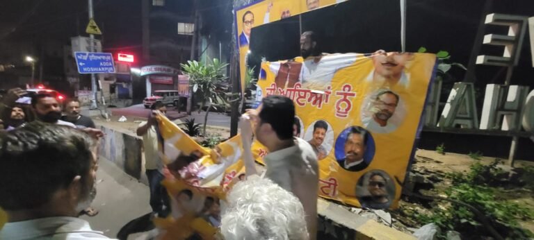 जालंधर : लोकसभा चुनावों की कमान पंजाब में सीएम भगवंत मान ने खुद संभाल ली है। वहीं आज जालंधर में पवन टीनू के हक में सीएम मान प्रचार करेंगे। इस दौरान लवकुश चौंक से भगत सिंह चौक तक पवन टीनू के लिए रोड शो निकाला जानें पर। जालंधर में देर रात ही फ्लैक्स बोर्ड लगा दिए गए थे। लेकिन आज सुबह आप पार्टी के नेता दिनेश ढल्ल ने बताया कि शरारती अनसंरों के इस कारनामे से आप पार्टी में भारी रोष पाया जा रहा है। उन्होंने उक्त शरारती अनसंरों के खिलाफ प्रशासन के कार्रवाई करने की मांग की है। बता दें कि सीएम मान का यह रोड शो आज दोपहर करीब साढ़े 3 बजे लवकुश चौक से शुरू होकर भगत सिंह चौक के पास खत्म होगा। इस दौरान सुरक्षा के कड़े प्रबंध किए गए है। इस मामले पर जब थाना प्रभारी तीन के परमदीन सिंह से बात की गई तो उन्होंने कहा यह रात्री की घटना हमारे उच्च आधिकारीयो को पता है बहुत जल्द शरारती अनसंरों के खिलाफ मामला दर्ज किया जायेगा