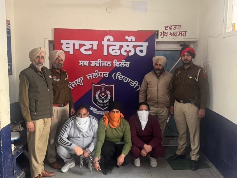 जालंधर : देहात पुलिस ने तीन व्यक्तियों को गिरफ्तार करके एक परिष्कृत भूमि धोखाधड़ी रैकेट का भंडाफोड़ किया है, जो जाली दस्तावेजों का उपयोग करके लगभग ₹10 करोड़ मूल्य की 10 एकड़ प्रमुख भूमि को धोखाधड़ी से पंजीकृत करने का प्रयास कर रहे थे। जानकारी देते हुए वरिष्ठ पुलिस अधीक्षक (एसएसपी), हरकमलप्रीत सिंह खख ने कहा कि विशिष्ट खुफिया सूचनाओं के बाद, फिल्लौर पुलिस ने एक सावधानीपूर्वक योजनाबद्ध अभियान चलाया, जिसके परिणामस्वरूप ये महत्वपूर्ण गिरफ्तारियाँ हुईं।यह कार्रवाई जसरूप कौर बाथ, आईपीएस, एसपी (जांच), सरवन सिंह बल पीपीएस, डीएसपी, सब डिवीजन फिल्लौर और इंस्पेक्टर संजीव कपूर पुलिस स्टेशन फिल्लौर की देखरेख में की गई।एसएसपी खख ने बताया, विश्वसनीय सूचना के आधार पर हमारी टीम ने तीन व्यक्तियों को पकड़ा, जिन्होंने बहादुरक बा गांव भाटिया में 10 एकड़ जमीन का फर्जी तरीके से स्वामित्व हासिल करने की योजना बनाई थी। आरोपियों ने बड़ी सावधानी से जाली आधार कार्ड और जमीन के स्वामित्व के दस्तावेज तैयार किए थे।पकड़े गए आरोपियों की पहचान दलजीत सिंह (प्रॉपर्टी डीलर) पुत्र कुलविंदर सिंह निवासी कल्याणपुर थाना लाबड़ा, गुरप्रीत सिंह पुत्र हरनेक सिंह निवासी सिद्धमुत्सदी थाना नूरमहल और जयराम (प्रॉपर्टी डीलर) पुत्र बख्शीराम निवासी स्वामी लालजी नगर बूटा मंडी जालंधर के रूप में की है।पुलिस स्टेशन फिल्लौर में धारा 318(3), 338, 340 बीएनएस के तहत मामला दर्ज किया गया है