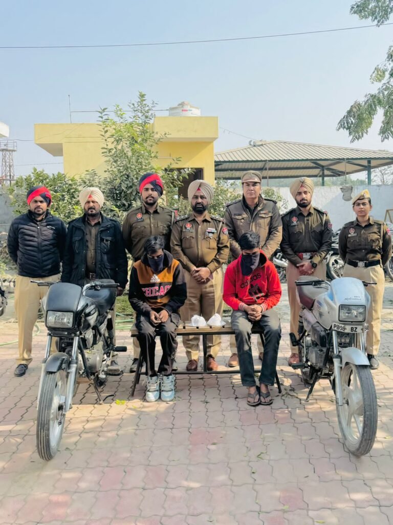 जालंधर : देहात पुलिस ने संगठित अपराध और मादक पदार्थों की तस्करी के खिलाफ चल रहे अभियान के तहत दो अलग-अलग अभियानों में तीन आरोपियों को गिरफ्तार किया है, जिनके पास से पांच चोरी की मोटरसाइकिलें और 190 नशीली गोलियां बरामद की गई हैं। जानकारी देते हुए वरिष्ठ पुलिस अधीक्षक हरकमल प्रीत सिंह खख ने कहा कि यह अभियान शून्य सहनशीलता नीति के तहत सड़क अपराध, वाहन चोरी और नशीली दवाओं की तस्करी पर अंकुश लगाने के लिए जिला पुलिस की प्रतिबद्धता को उजागर करता है। उन्होंने आश्वासन दिया कि जालंधर ग्रामीण पुलिस क्षेत्र में आपराधिक नेटवर्क को खत्म करने के प्रयासों को तेज कर रही है।पहले ऑपरेशन में, एसआई लवलीन कुमार के नेतृत्व में और डीएसपी सुखपाल सिंह की निगरानी में सदर नकोदर पुलिस टीम ने विशेष खुफिया जानकारी के आधार पर टाहली चौक के पास जगपिंदर सिंह उर्फ दीपू को गिरफ्तार किया। वह चोरी की गई काली बजाज प्लेटिना मोटरसाइकिल पर सवार पाया गया जिसका रजिस्ट्रेशन नंबर पी बी -08-डीवी-0745 था। पूछताछ के दौरान, दो और चोरी की गई मोटरसाइकिलें, दोनों बिना रजिस्ट्रेशन प्लेट के हीरो होंडा स्प्लेंडर मॉडल बरामद की गईं।दूसरे ऑपरेशन में, इंस्पेक्टर हरदेवप्रीत सिंह के नेतृत्व में और डीएसपी कुलवंत सिंह की निगरानी में पतारा पुलिस टीम ने नियमित गश्त के दौरान निचली नहर पुल के पास अजय कुमार और निखिल बग्गा को गिरफ्तार किया। आरोपी चोरी की हुई सिल्वर स्प्लेंडर मोटरसाइकिल पर सवार थे, जिस पर रजिस्ट्रेशन नंबर पी बी -08-बी जेड-8540 और फर्जी नंबर प्लेट लगी थी। उनके पास से 190 नशीली गोलियां बरामद की गईं। अजय कुमार से कुल 100 गोलियां और निखिल बग्गा से 90 गोलियां बरामद की गईं। कार्रवाई के दौरान एक और चोरी की हुई काली हीरो स्प्लेंडर मोटरसाइकिल भी बरामद की गई, जिस पर फर्जी रजिस्ट्रेशन प्लेट लगी थी। पकड़े गए आरोपियों की पहचान जगपिंदर सिंह उर्फ दीपू, पुत्र मनजीत सिंह, निवासी शिव नगर, मकसूदा, जालंधर; अजय कुमार, पुत्र दीपक कुमार, निवासी जोहलां, पथरा; और निखिल बग्गा, निवासी जॉन, पथरा के रूप में हुई है।ये मामले एफआईआर नंबर 152, दिनांक 06-12-2024 के तहत पुलिस स्टेशन सदर नकोदर में आईपीसी की धारा 303(2) भारतीय नया संहिता के तहत और एफआईआर नंबर 54, दिनांक 07-12-2024 के तहत पुलिस स्टेशन पटारा में आईपीसी की धारा 303(2) भारतीय नया संहिता और एनडीपीएस एक्ट के तहत दर्ज किए गए हैं।