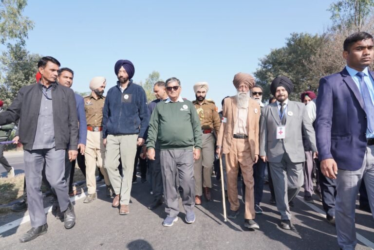 जालंधर : पंजाब के राज्यपाल गुलाब चंद कटारिया ने आज यहाँ नजदीक ऐतिहासिक गाँव ब्यास से ‘नशा मुक्त- रंगला पंजाब’ अभियान के अंतर्गत नशे के ख़िलाफ़ दो दिवसीय पैदल यात्रा की शुरुआत कर महिलाओं को इस सामाजिक बुराई के ख़िलाफ़ इकठ्ठे होने का न्योता दिया।विश्व प्रसिद्ध धावक फौजा सिंह के घर से शुरू हुई इस यात्रा का नेतृत्व करते हुए श्री कटारिया ने कहा कि नशे की समस्या से निपटने के लिए सरकार अपने स्तर पर व्यापक कार्यवाहियों कर रही है परन्तु नशे को पूरी तरह ख़त्म करने के लिए प्रत्येक व्यक्ति को मिल कर प्रयास करने की ज़रूरत है विशेषकर महिलाओं को आगे आकर नशे का विरोध करना चाहिए।उन्होंने कहा कि नशे करने से न केवल व्यक्ति के स्वास्थ्य पर ही बुरा प्रभाव पड़ता है बल्कि उसके परिवार को भी इस बीमारी का श्राप भुगतना पड़ता है, जिसका ज़्यादा शिकार महिलाएं होती है। श्री कटारिया ने कहा कि महिलाएं समाज की महत्वपूर्ण कड़ी है और नशे की समस्या के ख़ात्मे में बेहद प्रभावी भूमिका निभा सकती है।राज्यपाल ने कहा कि नशा जहाँ अपने आप में समस्या है वहीं इसके साथ और कई समस्याएँ जुड़ी हुई है, जिसमें सबसे बड़ा मसला अपराध है। नशे करने वाला व्यक्ति नशे की पूर्ति के लिए अपराध के रास्ते पर भी चलने से गुरेज़ नहीं करता।नशे ख़िलाफ़ लोक लहर में शामिल होने का न्योता देते श्री कटारिया ने कहा कि कोई भी अभियान लोगों के सहयोग से बिना सफल नहीं हो सकता। उन्होंने लोगों को आने वाली पीढ़ियों के लिए नशा मुक्त भविष्य सृजित करने के लिए इस अभियान में सक्रिय भागीदार बनने का न्योता दिया।इंडियन रैड्ड क्रास सोसायटी के सहयोग और सोशल वर्कर एंव प्रसिद्ध लेखक खुशवंत सिंह के सांझा यत्नों से निकाली गई यह पैदल यात्रा आज गाँव भट्ठे में समाप्त हुई। करीब 8 किलोमीटर की इस यात्रा का नेतृत्व राज्यपाल पंजाब ने स्वंय पैदल चल कर किया। बुद्धवार 11 दिसंबर को गाँव भट्ठे से सुबह 10:30 बजे करीब 7 किलोमीटर दूरी तय कर यह यात्रा जंग-ए-आज़ादी करतारपुर में समाप्त होगी, जहाँ समाप्ति समागम आयोजित होगा।करीब 113 वर्षीय धावक फौजा सिंह ने भी इस पैदल यात्रा में भाग लिया और करीब एक किलोमीटर पैदल चले।इस उपरांत राज्यपाल ने धावक फौजा सिंह को सम्मानित भी किया।स्कूलों के विद्यार्थियों ने पैदल यात्रा का हिस्सा बनते हाथों में बैनर और तख़्तियाँ पकड़ कर लोगों को नशे के ख़िलाफ़ जागरूकता का संदेश दिया।डायरैक्टर एम.एच.ए. ( सैंसज़ एंड सिटिजनशिप) ललित जैन आई.ए.एस., सचिव रैड्ड क्रास सोसायटी, पंजाब, शिवदुलार सिंह ढिल्लों, पूर्व आई.ए.एस., पूर्व प्रिंसीपल प्रमुख सचिव सुरेश कुमार, पूर्व सूचना कमिश्नर और प्रसिद्ध लेखक खुशवंत सिंह, गाँवों की पंचायतों, सामाजिक संस्थानों और अलग- अलग स्कूलों के वि