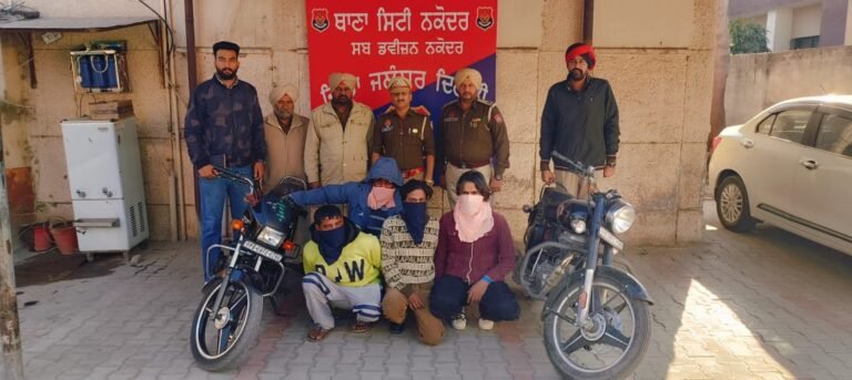 नकोदर में डीएसपी नकोदर के नेतृत्व में एक पुलिस टीम ने रहमानपुरा चौक के पास दो मोटरसाइकिलों पर चार व्यक्तियों को गिरफ्तार किया और 260 नशीली गोलियां बरामद कीं। एक अन्य ऑपरेशन में नकोदर पुलिस ने जालंधर, नकोदर, मेहतपुर और शाहकोट इलाकों में डकैती और चोरी की वारदातों में शामिल तीन व्यक्तियों को गिरफ्तार किया। आरोपियों ने 8 दिसंबर को इंद्रजीत सिंह पर हमला कर उनका मोबाइल फोन, दस्तावेज और मोटरसाइकिल लूट ली थी। गिरफ्तारी के बाद पुलिस ने चार मोबाइल फोन, चार मोटरसाइकिल और एक स्कूटर बरामद किया। पकड़े गए आरोपियों की पहचान गुरप्रीत सिंह उर्फ बग्गा, मंदीप सिंह उर्फ मनी, राहुल गिल उर्फ गायनी, नवजोत सिंह उर्फ रवि, नींदर कुमार, रोहित धीर उर्फ चारिया, दरबारा राम उर्फ बारा, विजय कुमार, राजन और विजय के रूप में हुई है, जो सभी एसबीएस नगर, नकोदर या मेहतपुर इलाके के रहने वाले हैं।