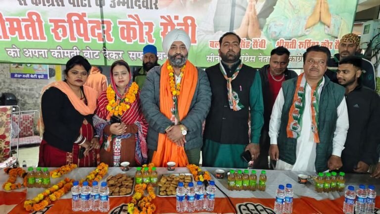 जालंधर : नगर निगम चुनावों में जालंधर नॉर्थ के वार्ड नं 77 से कांग्रेस प्रत्याशी रुपिंदर कौर सैम्बी ने अपने पति बलजीत सिंह सैम्बी को लेकर अपने क्षेत्र में डोर टू डोर प्रचार चुनाव प्रचार किया जिसमें उनको इलाका निवासियों का भरपूर समर्थन मिला। उन्होंने अपने परिवारों सदस्यों, रिश्तेदारों तथा समर्थकों के साथ घर-घर जाकर वोट मांगे चुनाव प्रचार दौरान बलजीत सिंह सैम्बी ने कहा कि भाजपा किसान विरोधी पार्टी है वहीं भाजपा देश विरोधी पार्टी है जो धर्म जाति के नाम पर लोगों को बांट रहे हैं वही कांग्रेस पार्टी ही एक ऐसी पार्टी है जो जनता के हक में फैसले लेकर पंजाब को फिर से रंगला पंजाब बनाने की जी तोड कौशिश कर रही है।इस बार वार्ड 77 के लोग अपनी एक एक वोट कांग्रेस उम्मीदवार देंगे जिससे कांग्रेस उम्मीदवार भारी मतों से जीत हासिल करेंगे।उन्होंने लोगों से अपील करते हुए कहा कि 21 दिसंबर को पोलिंग बूथ पर जाकर आप के चुनाव चिन्ह कांग्रेस का बटन दबाकर रुपिंदर कौर सैम्बी को पार्षद बनाना है।