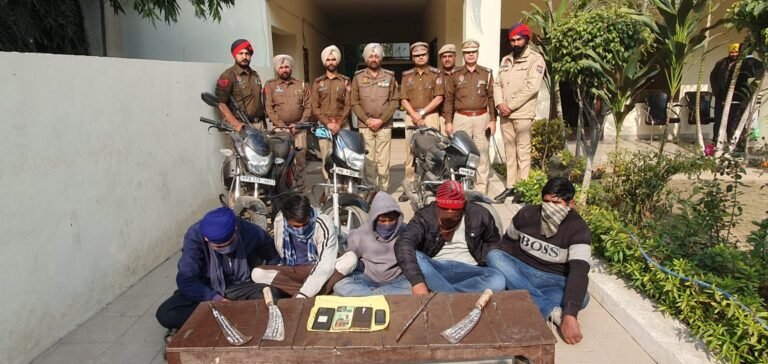 फिल्लौर/जालंधर : देहात पुलिस ने पेट्रोल पंप लूट की योजना बनाने और चोरी, डकैती और स्नैचिंग के कई मामलों से जुड़े एक कुख्यात गिरोह के पांच सदस्यों को गिरफ्तार किया। संगठित अपराध और नशीली दवाओं से संबंधित अपराधों पर नकेल कसने के लिए जिले भर में चलाए जा रहे अभियान के तहत यह कार्रवाई की गई। जानकारी देते हुए वरिष्ठ पुलिस अधीक्षक हरकमल प्रीत सिंह खख ने बताया कि विश्वसनीय सूचना पर त्वरित कार्रवाई करते हुए डीएसपी फिल्लौर सरवन सिंह बल्ल की देखरेख में इंस्पेक्टर संजीव कपूर, एसएचओ फिल्लौर के नेतृत्व में एक टीम ने विशेष अभियान के दौरान नवां शहर रोड के पास से आरोपियों को गिरफ्तार किया। आरोपी हाईवे पर लूटपाट और चोरी की वारदातों में सक्रिय रूप से शामिल थे और अक्सर पीड़ितों को धारदार हथियारों से धमकाते थे। वे यात्रियों और पैदल चलने वालों, खासकर महिलाओं को निशाना बनाते थे और नशे की लत को पूरा करने के लिए मोबाइल फोन छीनते और मोटरसाइकिल चोरी करते थे। प्रारंभिक जांच में गिरोह के तार क्षेत्र में 10 से अधिक आपराधिक घटनाओं से जुड़े पाए गए हैं।पुलिस ने इनके कब्जे से चोरी की तीन मोटरसाइकिल, चार मोबाइल फोन, तीन खंजर और एक लोहे की रॉड बरामद की है। पकड़े गए आरोपियों की पहचान जसकरन सिंह उर्फ जस्सा निवासी बछोवाल, कमल निवासी मोहल्ला मथुरापुरी, संजय कुमार निवासी महुल्ला चौधरी गारा रोड, रविंदर सिंह निवासी बकापुर और जतिंदर सिंह निवासी कंग अराया के रूप में हुई है। ये सभी फिल्लौर क्षेत्र के निवासी हैं।