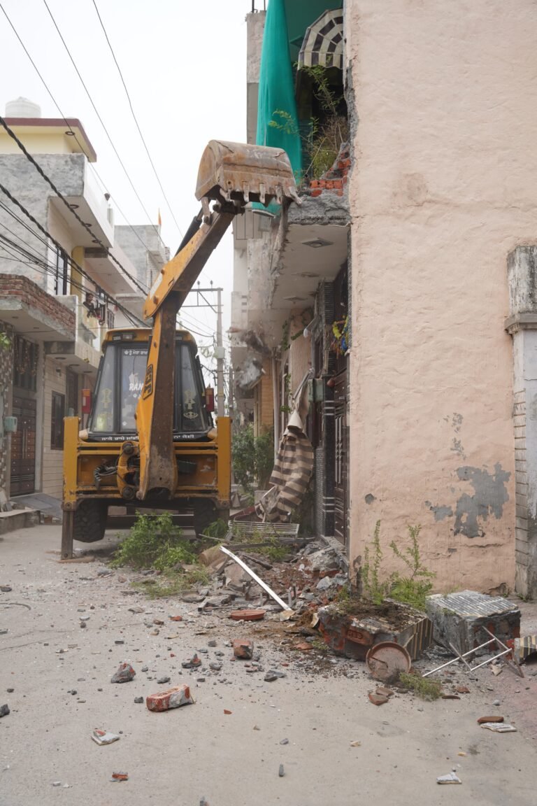जालंधर : मुख्यमंत्री भगवंत सिंह मान के नेतृत्व में पंजाब सरकार द्वारा शुरू किए गए नशा विरोधी अभियान ‘ युद्ध नशे के विरुद्ध ’ के तहत आज एक नशा तस्कर के एक और अवैध निर्माण को गिरा दिया गया। नगर निगम जालंधर द्वारा कमिश्नरेट पुलिस के सहयोग से स्थानीय उपकार नगर में यह कार्रवाई की गई। जानकारी देते हुए पुलिस कमिश्नर धनप्रीत कौर ने बताया कि नगर निगम जालंधर को उपकार नगर निवासी कुलवंत सहोता के अवैध निर्माण के बारे में सूचना मिली थी, जिसके खिलाफ जिले के विभिन्न थानों में एनडीपीएस एक्ट के तहत 5 मामले दर्ज है।उन्होंने बताया कि सहायक पुलिस कमिश्नर सेंट्रल अमनदीप सिंह के नेतृत्व में पुलिस टीमों ने तुरंत कार्रवाई करते हुए ड्यूटी मैजिस्ट्रेट और नगर निगम अधिकारियों की मौजूदगी में अवैध निर्माण को गिरा दिया, जिससे नशा तस्करों को सख्त संदेश गया कि जालंधर में नशे से संबंधित कोई भी गतिविधि बर्दाश्त नहीं की जाएगी।उल्लेखनीय है कि जिला पुलिस द्वारा पहले भी ऐसी कार्रवाई की गई है, जिसमें जिले भर में नशा तस्करों से जुड़े अवैध कब्जों को ध्वस्त करना भी शामिल है।