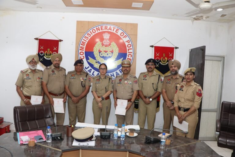 जालंधर : पुलिस लाइन में आयोजित एक विशेष समारोह में “युद्ध नशे के विरुद्ध युद्ध” में उनके उत्कृष्ट योगदान के लिए कुल 15 पुलिस अधिकारियों को सम्मानित किया गया। जानकारी देते हुए पुलिस कमिश्नर धनप्रीत कौर ने पिछले महीने के दौरान “ड्रग्स के विरुद्ध युद्ध” अभियान के दौरान उनकी निरंतर प्रतिबद्धता और उत्कृष्ट प्रदर्शन के लिए दो उप-निरीक्षकों और तेरह सहायक उप-निरीक्षकों (एएसआई) को क्लास-1 प्रशस्ति प्रमाण पत्र (सीसी-1) प्रदान किए। प्रत्येक अधिकारी को उनकी समर्पित सेवा के लिए प्रशंसा के प्रतीक के रूप में एक प्रशस्ति प्रमाण पत्र भी दिया गया धनप्रीत कौर ने कहा, “इन अधिकारियों ने ‘ड्रग्स के विरुद्ध युद्ध’ पहल के उद्देश्यों को आगे बढ़ाने में उल्लेखनीय समर्पण और साहस का प्रदर्शन किया है। उनके अटूट प्रयास ड्रग्स के खतरे से निपटने में जालंधर पुलिस की प्रतिबद्धता को दर्शाते हैं।”इस कार्यक्रम में वरिष्ठ अधिकारी डीसीपी मनप्रीत सिंह ढिल्लों, एडीसीपी जयंत पुरी और एसीपी मनमोहन सिंह उपस्थित थे, जिन्होंने अधिकारियों की सराहना की और उन्हें अपनी कड़ी मेहनत जारी रखने के लिए प्रोत्साहित किया।