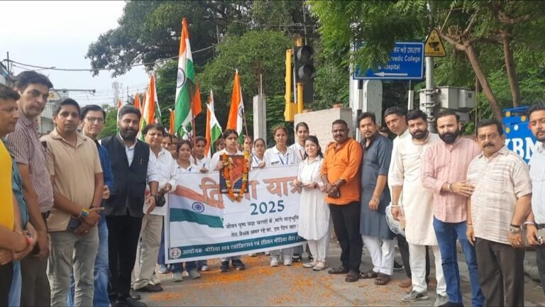 जालंधर : मीडिया स्टूडेंट एसोसिएशन द्वारा आयोजित तिरंगा यात्रा हरियाणा के सी एम हाउस संत कबीर कुटीर में हरियाणा के माननीय मुख्यमंत्री नायब सिंह सैनी ने हारी झंडी दिखा कर कश्मीर के लिए रवाना किया।अपने प्रस्तावित रूट के अनुसार हरियाणा से चली तिरंगा यात्रा आज 12 अगस्त को जालंधर के देवी तालाब मंदिर नजदीक मार्केट मे तिरंगा यात्रा निकाली जिसका जालंधर के लोगों ने फूल बरसा मार्केट के अलग अलग स्थानों पर स्वागत किया मीडिया छात्र संघ द्वारा आयोजित इस यात्रा का उद्देश्य देश भर में एकता के संदेश को बढ़ावा देना, राष्ट्रीय ध्वज के प्रति सम्मान को बढ़ाना और भाईचारे के बंधन को मज़बूत करना है। यह यात्रा 18 अगस्त को समाप्त होगी।इस पूरी यात्रा का नेतृत्व और प्रबंधन छात्राओं द्वारा किया जा रहा है। यह यात्रा न केवल हरियाणा की बेटियों के साहस को दर्शाती है, बल्कि पूरे देश की महिलाओं की शक्ति का भी प्रतिनिधित्व करती है।हाल ही में किया गया ‘ऑपरेशन सिंदूर’ भारत की अपनी संप्रभुता की रक्षा के संकल्प का प्रमाण है।