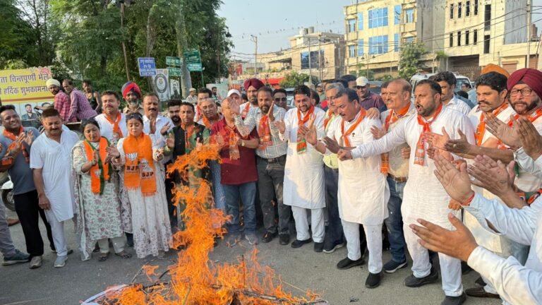 जालंधर : भारतीय जनता पार्टी जालंधर शहरी द्वारा प्रदेश भाजपा कार्यकारी अध्यक्ष अश्विनी शर्मा के आह्वान पर भाजपा जिलाध्यक्ष सुशील शर्मा की अध्यक्षता में शहर के चारों विधानसभा हल्कों में मान सरकार की धक्केशाही और पूर्व सांसद सुशील कुमार रिंकू एवं पूर्व संसदीय सचिव भाजपा प्रदेश उपाध्यक्ष कृष्ण देव भंडारी पर पंजाब पुलिस द्वारा पक्षपात रवैया अपनाते हुए मान सरकार के दबाव में जो उनकी गिरफ्तारी की उसके खिलाफ पूतला फूंक प्रदर्शन किया गया।इसमें जालंधर सेंट्रल में भाजपा प्रदेश महामंत्री राकेश राठौर के नेतृत्व में श्री राम चौक में, नॉर्थ हल्के में भाजपा जिलाध्यक्ष सुशील शर्मा के नेतृत्व में किशनपुरा,कैंट हल्के में पूर्व विधायक सरबजीत सिंह मक्कड़ के नेतृत्व में सब्जी मंडी चौक,वेस्ट हल्के में पूर्व विधायक शीतल अंगुराल के नेतृत्व में बाबू जगजीवन राम चौक में धरना प्रदर्शन किया गया।इन प्रदर्शनों में सेंट्रल हल्के में इंचार्ज जिला उपाध्यक्ष अश्वनी भंडारी और दविंदर कालिया, कैंट हल्के में जिला महामंत्री अमरजीत सिंह गोल्डी, नॉर्थ हल्के में जिला उपाध्यक्ष मनीष विज, दविंदर भारद्वाज,जिला मीडिया इंचार्ज तरुण कुमार,वेस्ट हल्के में जिला महामंत्री अशोक सरीन हिक्की को लगाया गया।इस रोष प्रदर्शन में भाजपा कार्यकर्ताओं ने पंजाब सरकार के खिलाफ जबरदस्त नारेबाजी की और मान सरकार मुर्दाबाद के नारे लगाए।इस मौके सुशील शर्मा ने कहा कि आम आदमी पार्टी की सरकार भाजपा की बढ़ती लोकप्रियता से घबराई हुई है और अब वह पुलिस का इस्तेमाल कर भाजपा नेताओं और कार्यकर्ताओं को परेशान करने की कोशिश कर रही है।सुशील शर्मा ने कहा कि वह दिल्ली में आम आदमी पार्टी की हार के बाद आम आदमी पार्टी बौखला गई है और अब पंजाब में पुलिस का इस्तेमाल कर भाजपा की बढ़ती लोकप्रियता को रोकने की कोशिश कर रही है। उन्होंने कहा कि भाजपा दे सेवादार आगए ने तुहाड़े द्वार अभियान को पुलिस के बल से रोकना जनविरोधी और तानाशाही कार्रवाई बिल्कुल गलत है। उन्होंने कहा कि मान सरकार ने गरीबों,सभी वर्गों और युवाओं को मजबूत बनाने वाली केंद्र सरकार की योजनाओं का समर्थन करने के बजाय,पुलिस बल का दुरुपयोग कर इन्हें रोकने का काम किया है।इस मौके राकेश राठौर ने कड़े शब्दों में इस घटना की निंदा की हैं।उन्होंने कहा कि पंजाब के इतिहास में यह दिन काला अध्याय के रूप में जाना जायेगा जहां लोकतंत्र को ताक पर राज्य सरकार कानून तंत्र पर दबाव बना कर अपनी दमनकारी नीतियों की मनमानी करवा रही है। उन्होंने कहा कि मान सरकार की विकास-विरोधी मानसिकता को भी उजागर करने वाला यह कृत्य प्रदेश के लोगों को कल्याणकारी योजनाओं की जानकारी और मार्गदर्शन से वंचित कर रहा है।इस म
