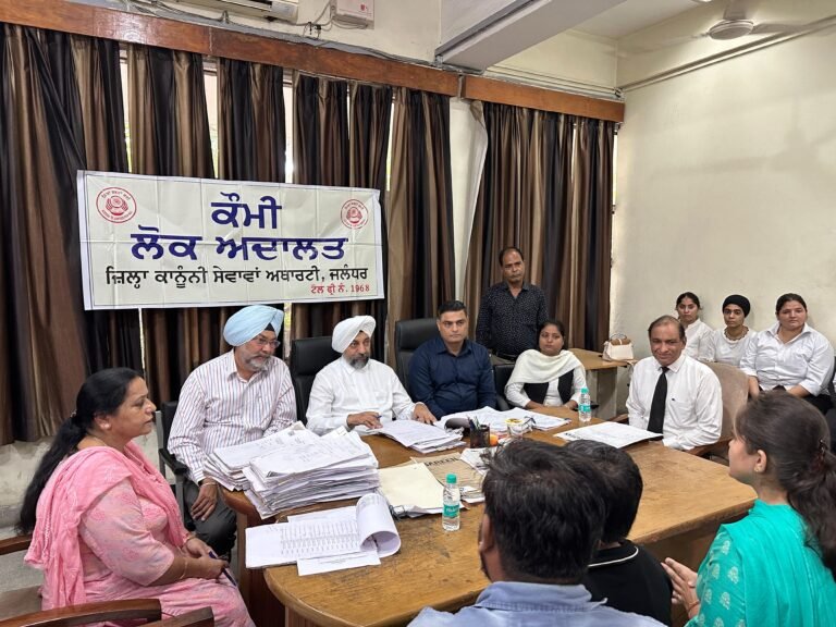 लोक अदालत में 130,18,74,274/- (130 करोड़ 18 लाख 74 हजार 274 रुपये) के अवार्ड निपटाए गए।श्री निर्भय सिंह गिल, ने बताया कि लोक अदालत के माध्यम से लोगों को तुरंत न्याय मिलता है। लोक अदालत का फैसला अंतिम होता है और इस फैसले के खिलाफ कोई अपील दायर नहीं की जा सकती। फैसला दोनों पक्षों के बीच आपसी समझौते के आधार पर दिया जाता है। लोक अदालतें सामुदायिक सौहार्द को बढ़ावा देती हैं। इसके अलावा, आवेदक द्वारा दी गई अदालती शुल्क भी वापस कर दी जाती है।इस संबंध में श्री राहुल कुमार, माननीय सी.जे.एम.-कम-सचिव, जिला विधिक सेवा प्राधिकरण, जालंधर ने बताया कि समय-समय पर लोक अदालतें लगाई जाती है ताकि मामलों का निपटारा आपसी समझौते के माध्यम से हो सके। लोक अदालत में मामला दर्ज करने और किसी भी कानूनी मामले के बारे में सलाह/मुफ्त कानूनी सहायता के लिए जानकारी प्राप्त करने हेतु, कोई भी व्यक्ति टोल-फ्री नंबर 15100 पर संपर्क कर सकता है। उन्होंने यह भी बताया कि अगली लोक अदालत 13.12.2025 को आयोजित होगी।इस दौरान श्री आदित्य जैन, अध्यक्ष और श्री रोहित गंभीर, सचिव, बार एसोसिएशन, जालंधर भी उपस्थित थे।