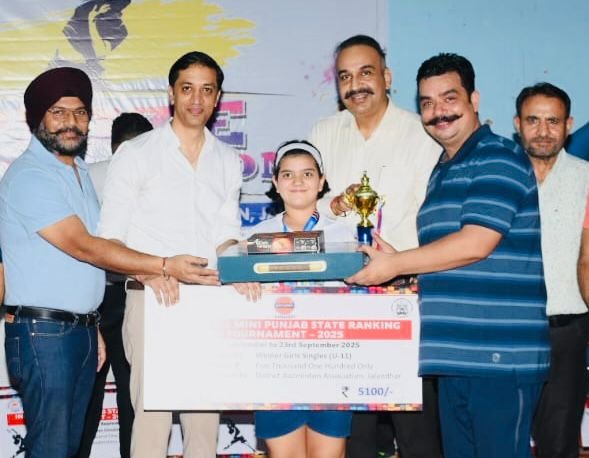 जालंधर : तीन दिवसीय इंडियन ऑयल पंजाब स्टेट मिनी रैंकिंग बैडमिंटन टूर्नामेंट का मंगलवार को जालंधर में शानदार समापन हुआ, जिसमें लुधियाना के खिलाड़ियों हर्षबीर सिंह ढिल्लों और आन्या तिवारी ने अपनी-अपनी श्रेणियों में चैंपियनशिप अपने नाम की। यह प्रतिष्ठित टूर्नामेंट जालंधर बैडमिंटन एसोसिएशन द्वारा आयोजित किया गया।पंजाब के 23 जिलों से 250 खिलाड़ियों ने अंडर-11 और अंडर-13 आयु वर्ग में हिस्सा लिया। कुल 8 इवेंट्स में 304 मुकाबले खेले गए।अंडर-13 बालकों के एकल फाइनल में लुधियाना के हर्षबीर सिंह ढिल्लों ने शानदार खेल दिखाते हुए रब्बीगुएल अंजी को सीधे सेटों में 21-12, 21-7 से मात दी। वहीं, अंडर-11 बालिकाओं के वर्ग में आन्या तिवारी ने बेहतरीन प्रदर्शन करते हुए बठिंडा की ब्लेसी को 21-13, 21-14 से हराकर खिताब जीता।पुरस्कार वितरण समारोह में मुख्य अतिथि श्री संदीप ऋषि (आईएएस), कमिश्नर, एमसी जालंधर ने खिलाड़ियों का हौसला बढ़ाया और बच्चों के सर्वांगीण विकास में खेलों के महत्व को रेखांकित किया। उन्होंने कहा – “खेल न केवल शारीरिक फिटनेस बल्कि मानसिक विकास के लिए भी आवश्यक हैं। ये बच्चों को अत्यधिक स्क्रीन टाइम से दूर रखते हैं और अनुशासन सिखाते हैं।”उन्होंने टूर्नामेंट को उत्कृष्ट ढंग से आयोजित करने के लिए जालंधर बैडमिंटन एसोसिएशन की भी सराहना की।विजेताओं को मुख्य अतिथि द्वारा नकद पुरस्कार और आकर्षक उपहार प्रदान किए गए। इस अवसर पर पंजाब बैडमिंटन एसोसिएशन के पदाधिकारी भी मौजूद रहे, जिनमें श्री कवी राज डोगरा (उपाध्यक्ष), श्री रितिन खन्ना (मान. सचिव), सरदार जसवंत सिंह, धीरज शर्मा (संयुक्त सचिव), कुसुम कैपी और पलविंदर जुनेजा शामिल थे।