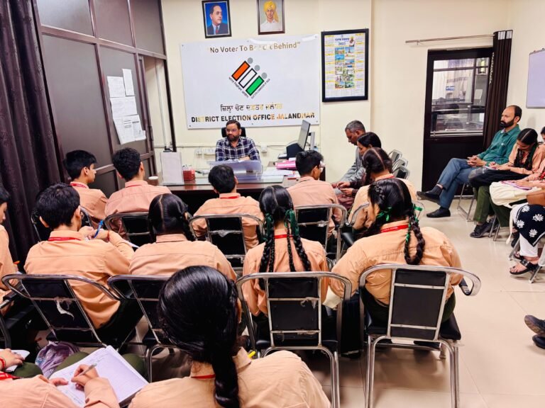 जालंधर : स्वामी संत दास पब्लिक स्कूल, जालंधर के छात्रों को आज जिला चुनाव दफ्तर में चुनाव प्रक्रिया और मतदाता पंजीकरण की जानकारी दी गई।चुनाव तहसीलदार सुखदेव सिंह ने छात्रों को चुनाव प्रक्रिया और मतदाता सूची में नाम दर्ज करवाने के बारे में विस्तार से जानकारी दी। उन्होंने बताया कि मतदाता सूची में नाम दर्ज करवाने के लिए फॉर्म नंबर 6, मतदाता सूची से नाम हटवाने के लिए फॉर्म नंबर 7, मतदाता सूची में विवरण में सुधार/निवास स्थान परिवर्तन/बिना सुधार के डुप्लीकेट मतदाता पहचान पत्र प्राप्त करने/दिव्यांग के तौर पर मार्किंग करने के लिए फॉर्म नंबर 8 और प्रवासी भारतीयों के लिए मतदाता सूची में नाम दर्ज करवाने के लिए फॉर्म संख्या 6 ए मतदाता सेवा पोर्टल (https://voters.eci.gov.in/) और वोटर हेल्पलाइन ऐप के माध्यम से भरे जा सकते है।उन्होंने बताया कि भारतीय चुनाव आयोग ने नए मतदाताओं के रजिस्ट्रेशन के लिए वर्ष में चार तिथियां निर्धारित की है, अर्थात् 1 जनवरी, 1 अप्रैल, 1 जुलाई और 1 अक्तूबर। इसके अलावा, कोई भी व्यक्ति चुनाव से संबंधित किसी भी जानकारी/सुझाव के लिए टोल फ्री मतदाता हेल्पलाइन नंबर 1950 के माध्यम से जिला निर्वाचन दफ्तर से संपर्क कर सकता है।इस अवसर पर विद्यार्थियों के साथ लेक्चरर मनजीत सिंह भी उपस्थित थे।