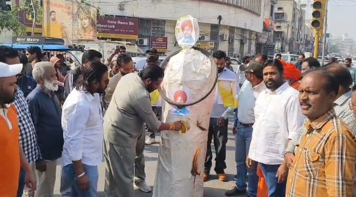 पंजाब के जालंधर में नगर निगम के कर्मचारियों द्वारा प्रभु श्री राम चौक में पंजाब प्रधान राजा वडिंग का पुतला फूंक कर प्रदर्शन किया गया। पिछले दिनों पंजाब प्रधान द्वारा तरन तारन के उपचुनाव में एक जनसभा के दौरान पूर्व गृहमंत्री बूटा सिंह को लेकर एक बयान दिया था। उक्त बयान में पंजाब के सियासत में हलचल मचा दी है। इसके बाद से जालंधर : पंजाब भर में राजा वडिंग का पुतला फूंक कर प्रदर्शन किया जा रहा है।वही इसको लेकर आज जालंधर के नगर निगम के कर्मचारियों के तरफ से भी पुतला फूंका गया है।प्रदर्शनकारी ने बताया कि यह प्रोटेस्ट अहंकारी राजा वडिंग के खिलाफ किया जा रहा है। जिसने सत्कार योग पूर्व गृहमंत्री को लेकर विवादित बयान दिया था। जबकि उन्होंने काफी उच्च लेवल की पढ़ाई और 6 बार सांसद और देश के गृहमंत्री रह चुके हैं। लेकिन जिस तरह पंजाब प्रधान द्वारा पूर्व गृहमंत्री को लेकर शब्दावली इस्तेमाल की गई है। उन्होंने कहा कि जिस पार्टी के प्रधान को इतना ही नहीं पता कि सीनियर व्यक्ति को किस तरह इज्जत देनी चाहिए। देश के रह चुके गृहमंत्री को लेकर इस तरह के शब्दावली बोलना काफी निंदनीय है।
