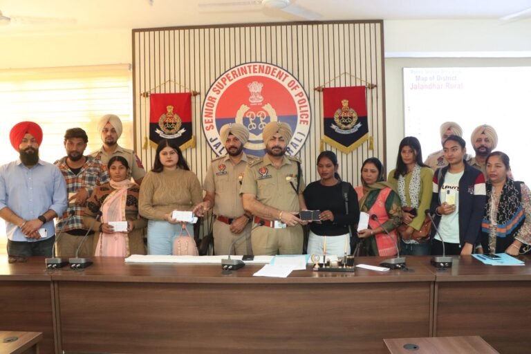 जालंधर : देहात पुलिस ने गुम हुए फोन को उनके परिजनों को लौटाया। प्रैस कांफ्रेंस में जानकारी देते हुए एसएसपी हरविंदर सिंह विर्क ने बताया कि पिछले समय में गुम हुए 78 फोन बरामद किए है। जिसे आज साइबर क्राइम और टेक्नीकल यूनिट के साथ मिलकर जनवरी से मिलकर अब तक 946 फोन गुम होने की शिकायत मिली थी। इस दौरान ट्रैक करके आज 78 पीड़ित परिवारों के उनके फोन लौटाए गए। इससे पहले भी 100 फोन लौटाए जा चुके है। उन्होंने कहा कि आज तीसरी बार पीड़ितों के फोन लौटाए जा रहे है। एसएसपी ने कहा कि सीआईआर पोर्टल पर कोई भी व्यक्ति फोन गुम होने की शिकायत दर्ज करवा सकता है। उन्होंने कहा कि इस पोर्टल के जरिए कई सुविधाएं मिल सकती है। एसएसपी ने कहा कि चोर साइबर और फ्रॉड के लिए फोन का इस्तेमाल कर सकते है।