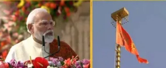 अयोध्या का राम मंदिर आज संपूर्ण हो गया। प्राण प्रतिष्ठा के 673 दिनों बाद पी एम मोदी और आर एस एस प्रमुख मोहन भागवत ने मंदिर के शिखर पर ध्वजारोहण किया। आज सुबह 11.50 बजे अभिजीत मुहूर्त में बटन दबाते ही 2 किलो की केसरिया ध्वजा 161 फीट ऊंचे शिखर पर फहराने लगी।ध्वजारोहण से पहले प्रधानमंत्री मोदी ने मोहन भागवत के साथ मंदिर की पहली मंजिल पर बने रामदरबार में पूजा और आरती की। इसके बाद रामलला के दर्शन किए। प्रधानमंत्री मोदी रामलला के लिए वस्त्र और चंवर लेकर पहुंचे थे आप को बात दे कि चारों शंकराचार्यों को छोड़कर देशभर के मठों के संत मंदिर परिसर में मौजूद रहे। शहर को 1000 क्विंटल फूलों से सजाया गया। मंदिर में 5-लेयर सुरक्षा रही। जिसमे ATS, NSG, SPG, CRPF और PAC के जवान तैनात रहे। रामलला ने आज सोने और रेशम के धागों से बने पीतांबर वस्त्र धारण किए।