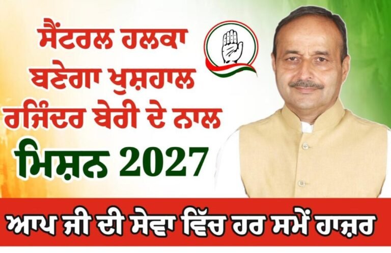 जालंधर सेंट्रल विधानसभा क्षेत्र राजिंदर बेरी से खुश है।जहां जिला कांग्रेस कमेटी शहरी के अध्यक्ष और पूर्व विधायक राजिंदर बेरी हर मुद्दे पर सरकार पर तंज कसते हैं, वहीं उनके समर्थक और उनकी टीम भी पूरी तरह से सक्रिय है और मिशन 2027 जीतने के लिए सोशल मीडिया पर एक पोस्ट डाली है और उस पोस्ट में लिखा है कि जालंधर सेंट्रल विधानसभा क्षेत्र राजिंदर बेरी से खुश है। गौरतलब है कि विधायक रहने के दौरान राजिंदर बेरी ने अपने विधानसभा क्षेत्र में विकास कार्यों में कोई कसर नहीं छोड़ी थी, उन्होंने अपने विधानसभा क्षेत्र में करोड़ों रुपये के विकास कार्य कराए थे।