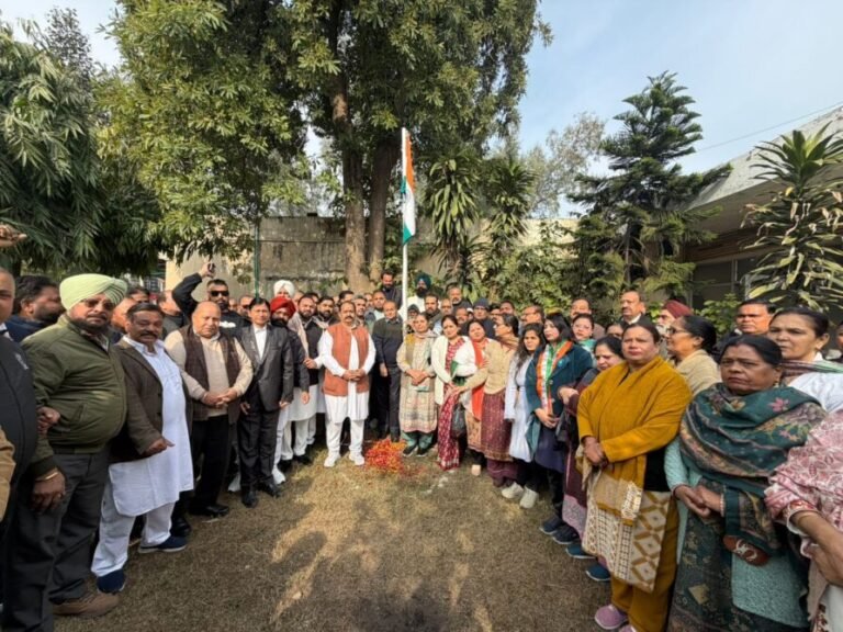 जालंधर : कांग्रेस भवन में गणतंत्र दिवस के शुभ अवसर पर कांग्रेस भवन भारत माता की जय के नारों से गूंज उठा। इस मौके पर हमारे देश का गौरवशाली झंडा, तिरंगा, कांग्रेस भवन में फहराया गया। इस मौके पर पंजाबी लख गायकों ने देशभक्ति गीतों से सबका मन मोह लिया। इस मौके पर जिला कांग्रेस अध्यक्ष राजिंदर बेरी, नॉर्थ हल्का विधायक जुनियर अवतार हैनरी बावा ने कहा कि आज का दिन हमारे देश के लिए खास महत्व रखता है, आज हमारे देश का संविधान लागू हुआ था। इस मौके पर प्रेम नाथ दकोहा, रशपाल जाखू, जगजीत कंबोज, राजीव शर्मा,विपिन कुमार, जगदीप सोनू संधर, सोहन लाल बावा, रविंदर लाडी, दीना नाथ प्रधान, नरेश वर्मा, रोहन चड्ढा, अमरीक गिल, बलराज ठाकुर, पवन कुमार, डॉ. जसलीन सेठी, नवदीप जरेवाल, सुखविंदर कुमार, मंदीप जस्सल, जगदीश दकोहा, विजय दकोहा, मनोज कुमार मनु, मक्खन सिंह, जगजीत जीता, सुभाष ढल्ल, सतपाल मीका, अवतार विरदी, मुनीश पाहवा, विक्रम दत्ता एडवोकेट, परमजीत गोल्डी, संजीव दुआ, लव सोहल, अतुल चड्ढा, मनजीत सिंह सिमरन, प्रेम पाल डुमेली, संजय सौंकर, हामिद मसीह, जगदीप सिंह, लेख राज, आत्म प्रकाश पाशी, सुधीर घुग्गी, अमनदीप धन्नोवाली, अशोक हंस, सरबजीत माना, यशपाल सफारी, कुलवरन सिंह, सूरज प्रकाश लाडी, ऋषि केश वर्मा, अश्विनी मल्होत्रा, अश्विनी सोंधी, रवि बग्गा, गुलशन मिड्डा, आदेश मागो, भारत भूषण, नंद लाल, सुरिंदर हांडा, मुनिपा स्वामी, राजिंदर सहगल, किशोरी लाल, धर्म पाल, अनिल कुमार, राम किशन, आलम अली, प्रेम सैनी, मनोज धनवाल, हरदीप सिंह, निशांत घई, आनंद बिट्टू, एडवोकेट मधु रचना, मंदीप कौर, सुरजीत कौर, पल्लवी, मीनू बग्गा, आशा अबादपुरा, आशा अग्रवाल, रणजीत रानो, सुनीता मैडम, ममता, रजनी रेरू, जसविंदर जस्सी, चंद्र कांता, पिंकी, शबनम, गुरमीत जस्सी, ज्योति वर्मा मौजूद थे।