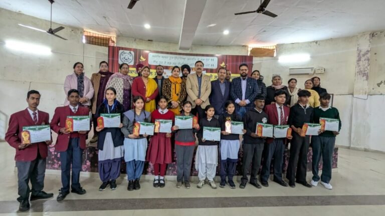 जालंधर : राष्ट्रीय सड़क सुरक्षा माह जनवरी 2026 के तहत जिला स्तर पर विभिन्न मुकाबले सरकारी मॉडल को-एजुकेशन सीनियर सेकेंडरी स्कूल, लाडोवाली रोड, जालंधर में करवाए गए। इन मुकाबलों में क्विज, स्लोगन, पोस्टर और भाषण मुकाबले शामिल थे।रीजनल ट्रांसपोर्ट दफ्तर के सहयोग से करवाए गए इस समागम का उद्देश्य विद्यार्थियों में सड़क सुरक्षा संबंधी जागरूकता पैदा करना और उन्हें ट्रैफिक नियमों की पालना के लिए प्रेरित करना था। जिला शिक्षा अधिकारी (सेकेंडरी शिक्षा) डॉ. गुरिंदरजीत कौर और उप जिला शिक्षा अधिकारी (सेकेंडरी शिक्षा) राजीव जोशी के नेतृत्व में करवाए गए इन जिला स्तरीय मुकाबलों के दौरान जिले के विभिन्न सरकारी और निजी स्कूलों से आए विद्यार्थियों ने बड़े उत्साह, अनुशासन और रचनात्मकता के साथ भाग लिया।इस मौके पर उप जिला शिक्षा अधिकारी राजीव जोशी ने अपने संबोधन में कहा कि सड़क हादसों को रोकने के लिए ट्रैफिक नियमों की पालना बहुत जरूरी है और नौजवानों की भूमिका इस दिशा में सबसे अहम है। उन्होंने हेलमेट पहनने, सीट बेल्ट की लगाने , नशे की हालत में वाहन न चलाने और तेज गति से बचने के बारे में विस्तार से जानकारी दी।प्रिंसिपल-कम-कोऑर्डिनेटर दिनेश कुमार ने विद्यार्थियों को संबोधन करते हुए कहा कि सड़क सुरक्षा नियमों की पालना करके अनेक कीमत जानें बचाई जा सकती हैं। प्रिंसिपल मनिंदर कौर ने बताया कि आज के भाषण मुकाबलों में सरकारी सीनियर सेकेंडरी स्कूल लधेवाली की पूनम कुमारी ने पहला, सरकारी हाई स्कूल कोटला सूरजमल के ओंकार सिंह ने दूसरा और स्कूल ऑफ एमिनेंस मकसूदां के अभिषेक कुमार ने तीसरा स्थान हासिल किया। क्विज मुकाबलों के दौरान सरकारी मॉडल सीनियर सेकेंडरी स्कूल पी.ए.पी. की मन्नत ने पहला, सरकारी कन्या सीनियर सेकेंडरी स्कूल गुराया की अंकिता ने दूसरा और सरकारी हाई स्कूल तलवंडी भरो की गुरमीत कौर ने तीसरा स्थान हासिल किया। पोस्टर मेकिंग मुकाबलों में सरकारी सीनियर सेकेंडरी स्कूल नोगज्जा के लविश ने पहला, स्कूल ऑफ एमिनेंस आदमपुर के आशीष गिरी ने दूसरा और स्कूल ऑफ एमिनेंस भारगो कैंप के अवनीश ने तीसरा स्थान हासिल किया। इसी तरह स्लोगन लिखने के मुकाबले में सरकारी हाई स्कूल मानको के मनजोत विर्दी ने पहला, सरकारी सीनियर सेकेंडरी स्कूल बिनप पालके के गुरकमल ने दूसरा और स्कूल ऑफ एमिनेंस भार्गो कैंप की पूर्वी ने तीसरा स्थान हासिल किया।मुकाबलों के अंत में उप जिला शिक्षा अधिकारी राजीव जोशी, प्रिंसिपल मनिंदर कौर, कोऑर्डिनेटर दिनेश कुमार, सहायक कोऑर्डिनेटर नरिंदर भगत और हरजीत कुमार ने विजेता विद्यार्थियों को स्मृति चिन्ह और सर्टिफिकेट देकर सम्मानित किया।