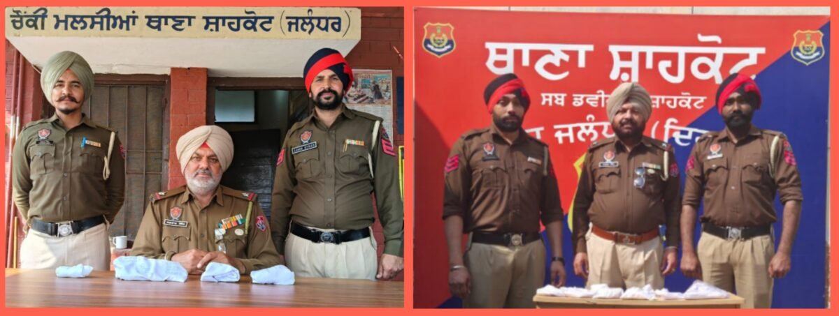 इसी प्रकार दिनांक 20.02.2026 को एएसआई सरवण सिंह, थाना शाहकोट ने पुलिस पार्टी सहित क्षेत्र गश्त के दौरान नजदीक गांव थम्मूवाल से एक कार नंबर PB-33-E-3651 मार्का स्विफ्ट डिजायर (रंग सफेद) में सवार कार चालक बलजीत सिंह उर्फ बलजीता पुत्र कुलवंत सिंह निवासी बीटला थाना महितपुर जिला जालंधर तथा साथ वाली सीट पर बैठे लवप्रीत सिंह उर्फ समर पुत्र मुख्तियार सिंह निवासी जोधे थाना सदर जलालाबाद जिला फाजिल्का को काबू किया।तलाशी लेने पर बलजीत सिंह उर्फ बलजीता से 102 ग्राम हेरोइन तथा लवप्रीत सिंह उर्फ समर से 101 ग्राम हेरोइन, कुल 203 ग्राम हेरोइन बरामद हुई। इस संबंध में इनके खिलाफ मुकदमा नंबर 44 दिनांक 20.02.2026 अधीन धारा 21/61/85 NDPS Act थाना शाहकोट जिला जालंधर में दर्ज कर गिरफ्तार किया गया है। पकड़े गए आरोपियों की पहचान बलजीत सिंह उर्फ बलजीता पुत्र कुलवंत सिंह निवासी बीटला थाना महितपुर जिला जालंधर, लवप्रीत सिंह उर्फ समर पुत्र मुख्तियार सिंह निवासी जोधे थाना सदर जलालाबाद जिला फाजिल्का हुई है पकड़े गए व्यक्तियों के पास से. 203 ग्राम हेरोइन, एक कार नंबर PB-33-E-3651 मार्का स्विफ्ट डिजायर बरामद की गई आप को बात दे कि आरोपियों को अदालत में पेश कर पुलिस रिमांड हासिल किया जा रहा है तथा इनसे गहन पूछताछ जारी है। नशा तस्करी में शामिल अन्य व्यक्तियों संबंधी अहम सुराग मिलने की संभावना है।