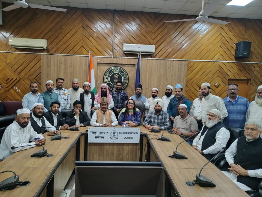 जालंधर : ईद की नमाज के मद्देनजर पंजाब मुस्लिम वेलफेयर डेवलपमेंट बोर्ड के चेयरमैन अब्दुल बाहरी सलमानी के नेतृत्व में शहरी और देहाती क्षेत्रों की मस्जिदों के मुतवल्ली, प्रधान, सचिव तथा अन्य प्रमुख मुस्लिम प्रतिनिधियों की आज जिला प्रशासन के उच्च अधिकारियों के साथ बैठक हुई।यहां जिला प्रशासकीय कॉम्प्लेक्स में हुई बैठक के दौरान चेयरमैन अब्दुल बाहरी सलमानी ने संबंधित विभागों से जालंधर शहर और देहाती क्षेत्रों की मस्जिदों तथा ईदगाहों में नमाज के मद्देनजर जरूरी इंतजाम सुनिश्चित करने के लिए कहा, ताकि ईद की नमाज उचित ढंग से संपन्न हो सके।उन्होंने संबंधित अधिकारियों को सुचारू ट्रैफिक व्यवस्था, सुरक्षा प्रबंधों के अलावा सफाई, पीने का पानी, मोबाइल टॉयलेट समेत अन्य आवश्यक प्रबंध समय पर सुनिश्चित करने के लिए निर्देश दिए, ताकि ईद की नमाज में शामिल होने वालों को कोई असुविधा न हो।बैठक के दौरान अतिरिक्त डिप्टी कमिश्नर (ज) अमनिंदर कौर ने भरोसा दिलाया कि जिला प्रशासन ईद की नमाज को ध्यान में रखते हुए पुख्ता प्रबंध इंतजाम करेगा।बैठक में एसडीएम नवदीप सिंह के अलावा पुलिस, नगर निगम जालंधर तथा विभिन्न विभागों के अधिकारी और पंजाब वक्फ बोर्ड के प्रतिनिधि भी मौजूद थे।