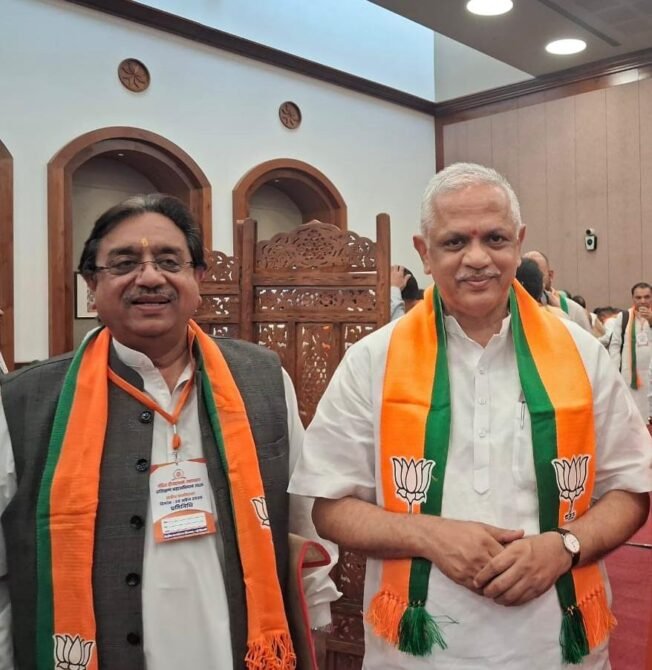 जालंधर : पंडित दीनदयाल उपाध्याय प्रशिक्षण महाभियान 2026 के अंतर्गत मंडल प्रशिक्षण वर्ग सफलतापूर्वक संपन्न होने के उपरांत आगामी जिला स्तरीय प्रशिक्षण के लिए वक्ताओं का प्रशिक्षण जोनल स्तर पर आयोजित किया जा रहा है। इसी क्रम में दिनांक 20 अप्रैल 2026 को केंद्रीय कार्यालय, नई दिल्ली में जोनल प्रशिक्षण कार्यशाला का आयोजन किया गया।कार्यशाला के दौरान भारतीय जनता पार्टी के प्रदेश महामंत्री राकेश राठौर ने राष्ट्रीय संगठन महामंत्री श्री बी. एल. संतोष जी से शिष्टाचार भेंट की।राष्ट्रीय संगठन महामंत्री बी. एल. संतोष जी ने प्रशिक्षण अभियान को संगठन सुदृढ़ीकरण का महत्वपूर्ण माध्यम बताते हुए इसे प्रभावी ढंग से संचालित करने पर बल दिया। उन्होंने कहा कि प्रशिक्षण के माध्यम से कार्यकर्ताओं को वैचारिक, संगठनात्मक एवं कार्यपद्धति संबंधी विषयों पर सक्षम बनाना समय की आवश्यकता है, जिससे पार्टी की गतिविधियों को गति मिलेगी।कार्यशाला में आगामी कार्यक्रमों की योजना, प्रशिक्षण सामग्री, वक्ताओं की तैयारी तथा जिला स्तर पर अभियान को सफल बनाने को लेकर विस्तृत विचार-विमर्श किया गया। कार्यक्रम में उपस्थित पदाधिकारियों ने प्रशिक्षण महाभियान को अधिक प्रभावी बनाने के लिए अपने सुझाव भी प्रस्तुत किए।