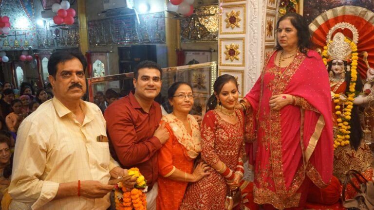 जालंधर ( एस के वर्मा ): मां राजेश्वरी धाम देवी राज रानी मंदिर बस्ती शेख में मां देवी राज रानी जी का जन्म उत्सव व मूर्ति स्थापना दिवस बड़ी श्रद्धा पूर्वक मंदिर प्रबंधक कमेटी के प्रधान श्री कैलाश बब्बर की अध्यक्षता में मनाया गया इस मौके पर माँ का गुणगान करने पहुंची पार्टिया महंत पंकज ठाकुर एंड पार्टी, कुमार लवली एंड पार्टी, वरुण शर्मा एंड पार्टी द्वारा माँ के भजनो का गुणगान किया गया मंदिर प्रबंधक कमेटी के प्रधान कैलाश बब्बर व अन्य मेंबरों द्वारा पार्टी के सभी सदसियो को स्मृति चिन्ह देकर सम्मानित किया गया