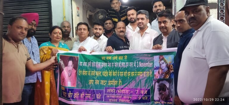 जालन्धर ( एस के वर्मा ): जय बाबा अली शाह जी का सलाना मेला 3 नवम्बर को काजी मुहल्ला मेशी बेकरी वाली गली में बड़ी धूमधाम से मनाया जा रहा है इस शुभ अवसर जानकारी देते हुए संचालक मुकेश खन्ना मेशी ने कहा कि नार्थ हल्का के विधायक जूनियर अवतार हेनरी बावा ने इस प्रोग्राम के इलाके में लगने वाले बैनरों व पोस्टर को रिलीज किया गया व नार्थ हल्का के विधायक जूनियर अवतार हेनरी बावा ने इस कार्यक्रम की हार्दिक बधाई दी पूरी जानकारी देते हुए मुकेश खन्ना मेशी ने बताया कि जय बाबा अली शाह जी के झंडा रस्म 1बजे भण्डार 7 बजे व जय बाबा अली शाह जी का गुणगान 9 बजे किया जा रहा है आप सभी शहरवासियों से निवेदन है कि अपने परिवार सहित पहुंच कर जय बाबा अली शाह जी का आशीर्वाद प्राप्त करे इस मौके पर पार्षद रीटा शर्मा, सुभाष शर्मा,नितिन खन्ना, वरिंदर खन्ना, मोनू खन्ना,प्रतीक खन्ना,संजू नारंग,कनु मोदी,नरेन्द्र नूरी,सुभाष शर्मा,मोहित कुमार, परमदीप सिंह, अश्वनी टीटू,रुन्दु, बीटा उपस्थित रहे