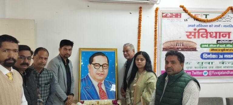जालन्धर ( एस के वर्मा ): भारत सरकार के युवा मामले तथा खेल मंत्रालय के दिशा-निर्देशों के तहत जालन्धर के ज़िला युवा अधिकारी नित्यानंद यादव ने नौजवानों को संविधान दिवस के मौके पर हर नागरिकों को उनके अधिकार के साथ साथ देश के प्रति अपने कर्तव्यों से जोड़ने तथा उनमें मन में लोकतंत्र पर विश्वास , लोकतंत्र की मजबूती का भी संदेश दिया। नेहरू युवा केन्द्र जालंधर द्वारा “संविधान दिवस कार्यक्रम जालंधर के डॉ. भीम राव अम्बेडकर सरकारी कॉलेज में करवाया गया । इस कार्यक्रम के मुख्य अतिथि डॉ गगनदीप कौर चीफ ज्यूडिशल मजिस्ट्रेट आदि थे। इस कार्यक्रम का मुख्य उद्देश्य अपने अधिकारों को पहचानना तथा राष्ट्रीय एकता व एकजुटता रहा।