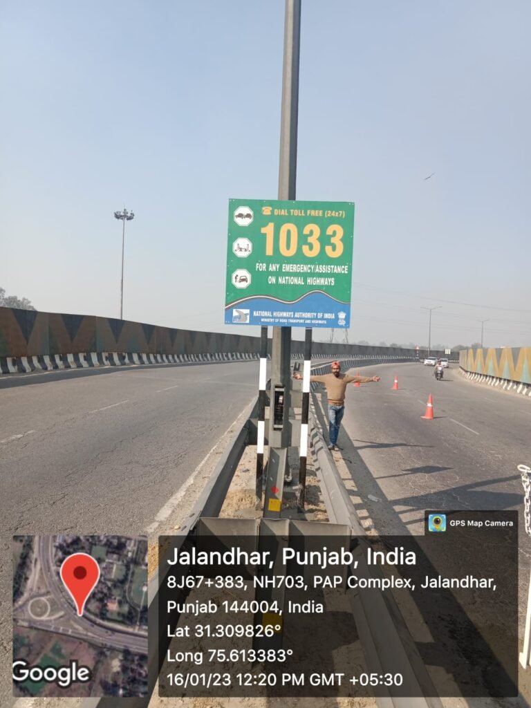 जालंधर ( एस के वर्मा / एम के शर्मा ): डिप्टी कमिश्नर जसप्रीत सिंह के निर्देशों की पालना करते भारतीय राष्ट्रीय राजमार्ग प्राधिकरण (एनएचएआई) ने हाईवे पर किसी भी तरह की आपातकालीन सहायता के लिए टोल फ्री नंबर बोर्ड लगाने शुरू कर दिए है। जानकारी देते हुए डिप्टी कमिश्नर ने कहा कि सड़क सुरक्षा समिति की पिछली बैठकों के दौरान (एनएचएआई) को हाईवे के साथ अधिक से अधिक साईन बोर्ड लगाने के निर्देश दिए गए थे ताकि जरूरत पडने पर यात्रियों को मुफ्त एंबुलेंस, क्रेन और अन्य आपातकालीन सहायता के साथ मदद की जा सके। उन्होंने आगे बताया कि अथारिटी की तरफ से यात्रियों की सुविधा के लिए टोल फ्री नंबर 1033 पर एबुलैंस और क्रेन आदि मुफ्त एमरजैंसी सेवाएं प्रदान की जाती है । इन सेवाओं की जानकारी के अभाव में बड़ी संख्या में लोगों को हाईवे पर वाहन खराब होने या मैडीकल आपात स्थिति में परेशानी का सामना करना पडता है। उन्होंने एनएचएआई अधिकारियों को निर्देश दिया कि वे यात्रियों को इन मुफ्त आपातकालीन सेवाओं की उपलब्धता के बारे में सूचित करने के लिए राजमार्गों के किनारे अधिक से अधिक साइनबोर्ड लगाएं। डिप्टी कमिश्नर ने आगे कहा कि हाईवे अथारिटी ने सड़क में कट (एंट्री और एग्जिट प्वाईंट) की मुरम्मत भी शुरू कर दी है ताकि इन महत्वपूर्ण स्थानों पर किसी भी प्रकार की सड़क दुर्घटना को रोका जा सके। उन्होंने कहा कि बहुमूल्य जीवन की रक्षा के लिए जिला प्रशासन के वरिष्ठ अधिकारी भी राष्ट्रीय राजमार्गों पर चल रहे कार्यों की रोजाना आधार पर निगरानी कर रहे है।