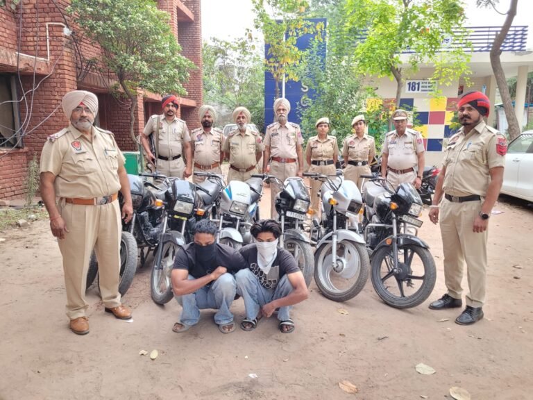 जालंधर ( एस के वर्मा ) : थाना 4 की पुलिस ने दो पहिया वाहन चोरों को गिरफ्तार किया है। जानकारी देते हुए थाना प्रभारी एसआई मंनजिदर सिंह ने बताया कि उक्त आरोपियों को एसआई बलजिंदर सिंह के नेतृत्व में चोरी के 7 मोटरसाइकिल सहित काबू किया है।आरोपियों की पहचान जोबनजीत सिंह पुत्र लखविंदर सिंह निवासी गांव खवासपुर नजदीक फतेहाबाद, जुगराज सिंह पुत्र मंगल सिंह निवासी गांव फतेहाबाद, गोइंदवाल साहिब के रूप में हुई है। आरोपियों से पूछताछ के दौरान पता चला कि बाइके अलग-अलग जगहों से चोरी की है।