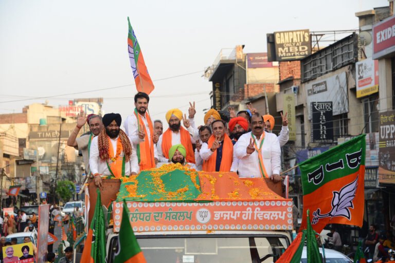 जालंधर : भारतीय जनता पार्टी द्वारा भाजपा प्रदेश अध्यक्ष अश्वनी शर्मा के नेतृत्व में आयोजित भव्य रोड शो ने जिस तरह से शहर की जनता उमड़ कर आई, उससे ना केवल भाजपा कार्यकर्ताओं के हौसले बुलंद हो गए हैं, वहीं विपक्षी दलों के होश व नींद दोनों उड़ गए हैं। इस भव्य रोड शो में जहां भारतीय जनता पार्टी द्वारा शामिल किए गए ढोल ताशों से जहां हर तरफ रोड शो की गूंज थी, वहीं रोड शो में शामिल रथ अलग ही आकर्षण पैदा कर रहा था। गिद्दा भंगड़ा ने लोगों में विशेष उमंग भर दी, तो महिला मोर्चा के सदस्यों के सिर पर सजी पगड़ियों के केसरी रंग से सारा शहर भगवामय हो गया।